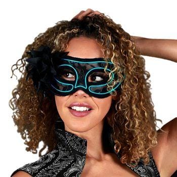 Aqua Electro Luminescent Wire Black Lace Party Mask