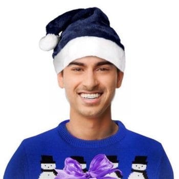 1 pack of 36 Unlit Dark Blue Stylish Fluffy Fur Santa Christmas Plush Hat