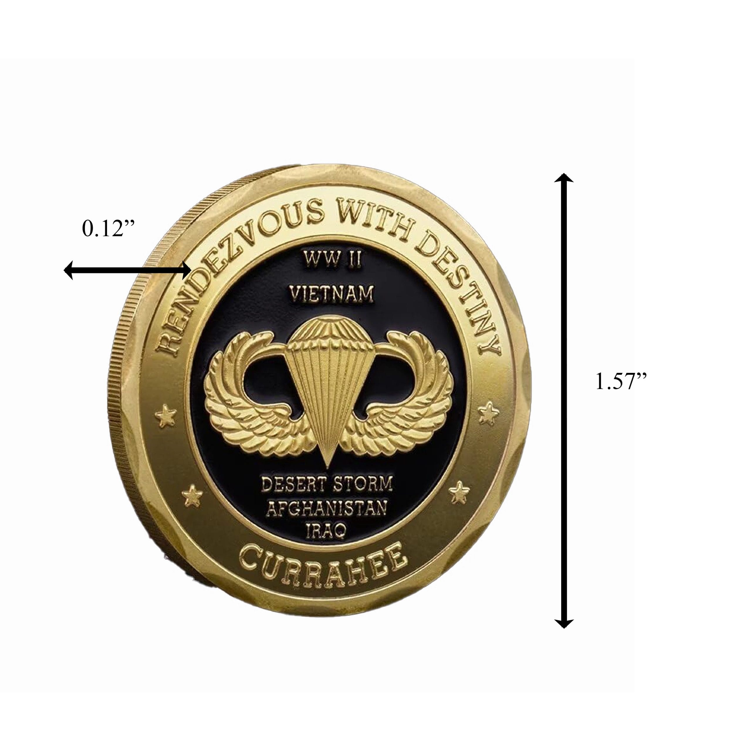 Hey there! I’m the 101st Airborne Division Screaming Eagles Commemorative Coin. Let me tell you, I’m not just any old piece of metal. I measure a neat 1.57 inches in diameter and a slim 0.12 inches thick. This means I fit just right in your pocket or can be displayed proudly in my protective case! 💰