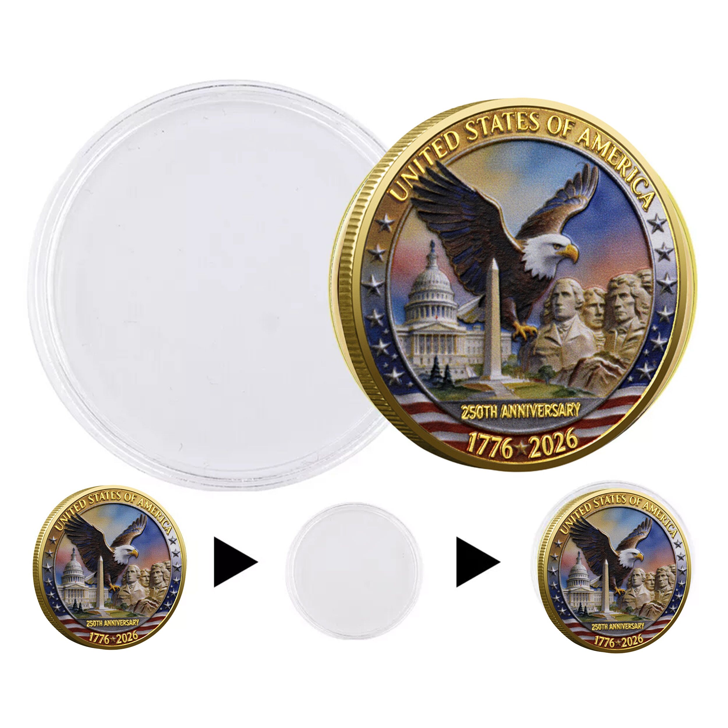 🇺🇸 Hey there… yeah, I’m the one catching your eye. Hard not to, right? I’ve been shining since 1776—well, symbolically anyway. I carry a whole lot of history on my face, and I don’t mean to brag, but I wear it pretty well. From the eagle soaring across storms to the bold flag behind me, I’m basically freedom… in pocket-sized form.