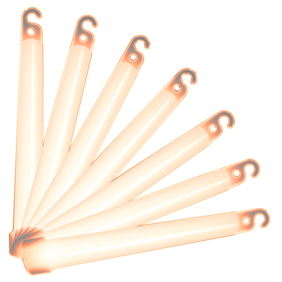 Each 5 Minute High Intensity 6 Inch Glow Sticks Pack of 10 have a round, tapered barrel with a hook and a hole at the top. These Glow Sticks are sold in Packs of 10. Therefore when you buy 1, you will receive 10 Blue Glow Sticks. When you buy 2 you will receive 20 Blue Glow Sticks, and so on Glow Stick Color: Orange Dimensions: Length: 6 inches Diameter: 15mm (0.6 inches) Glow Sticks are packaged unwrapped in a baggie. Glow time: 5+ minutes Shelf life: 18 months NOTE: You are buying 5 minute High Intensity Glow Sticks. This line of products is designed for people with a targeted goal – insanely bright light for under ten minutes. Batteries not needed, just crack, shake, and glow!