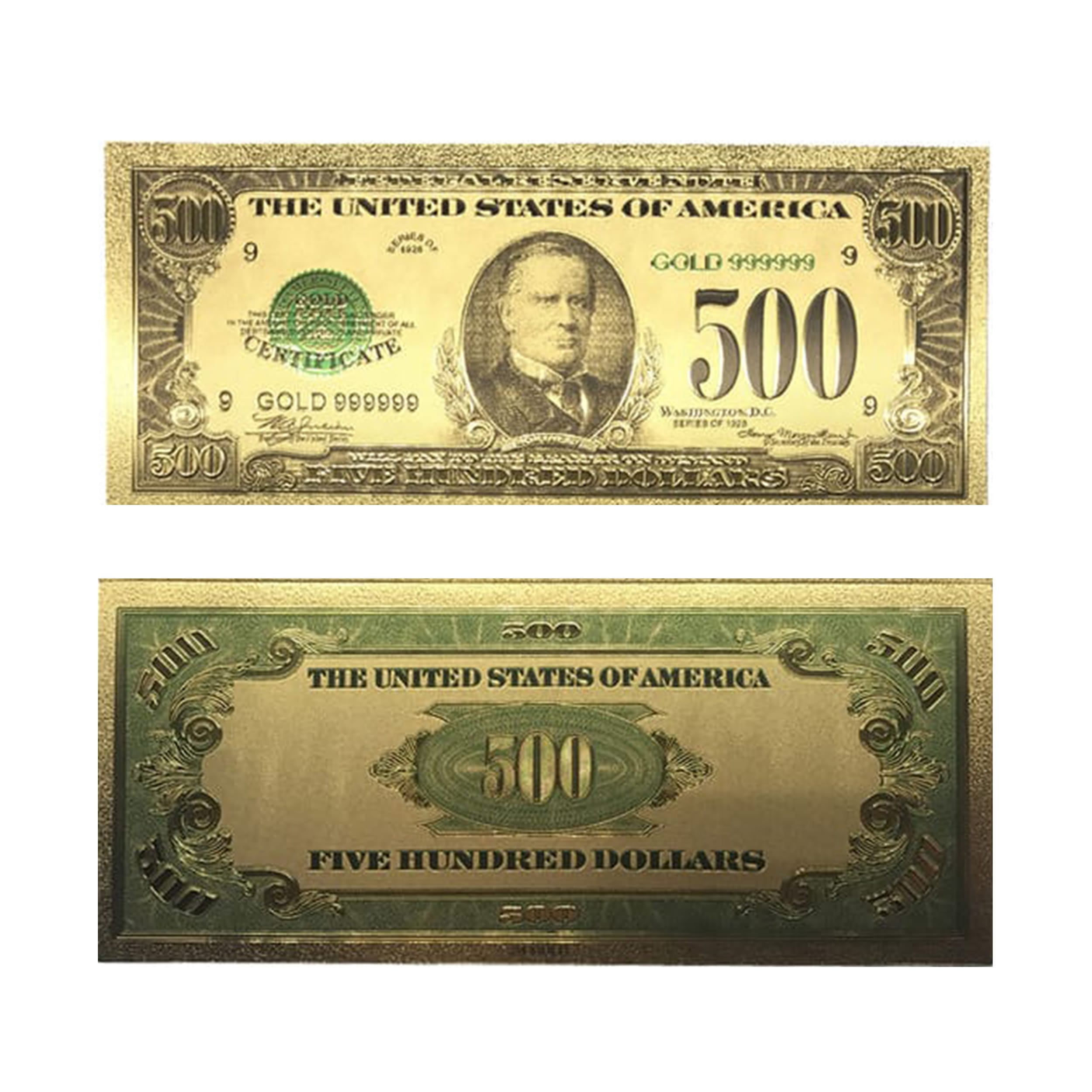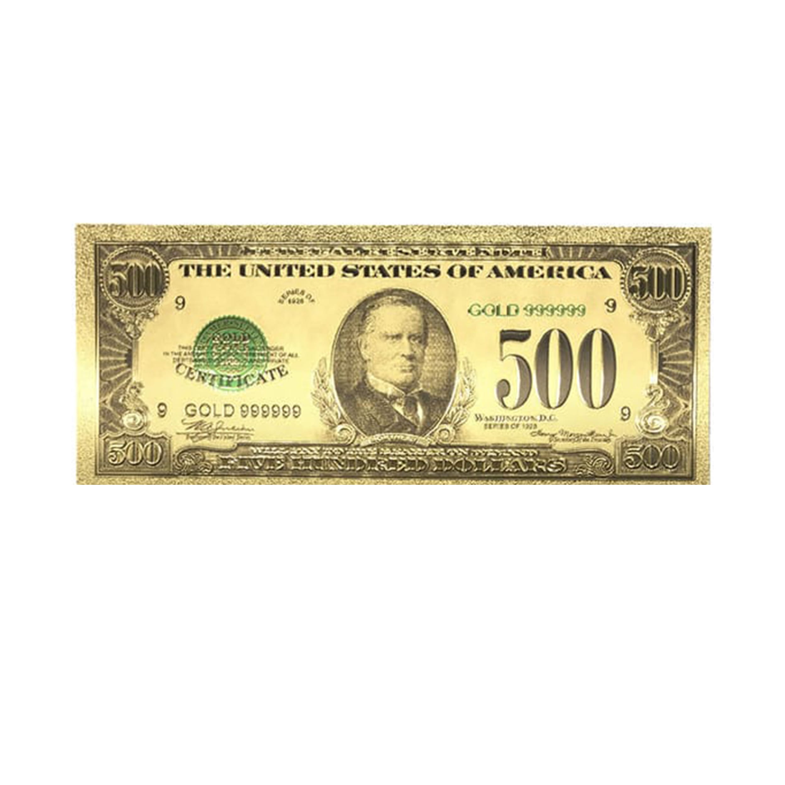 This extravagant 24k gold plated imitation bank note is a one of a kind commemorative item. Our 500 Dollar American Dollar Bill 24k Gold Plated Art Collectibles Fake Banknote Currency for Decoration is handcrafted with utmost care to each element which recreates the actual United States five hundred dollar bill.