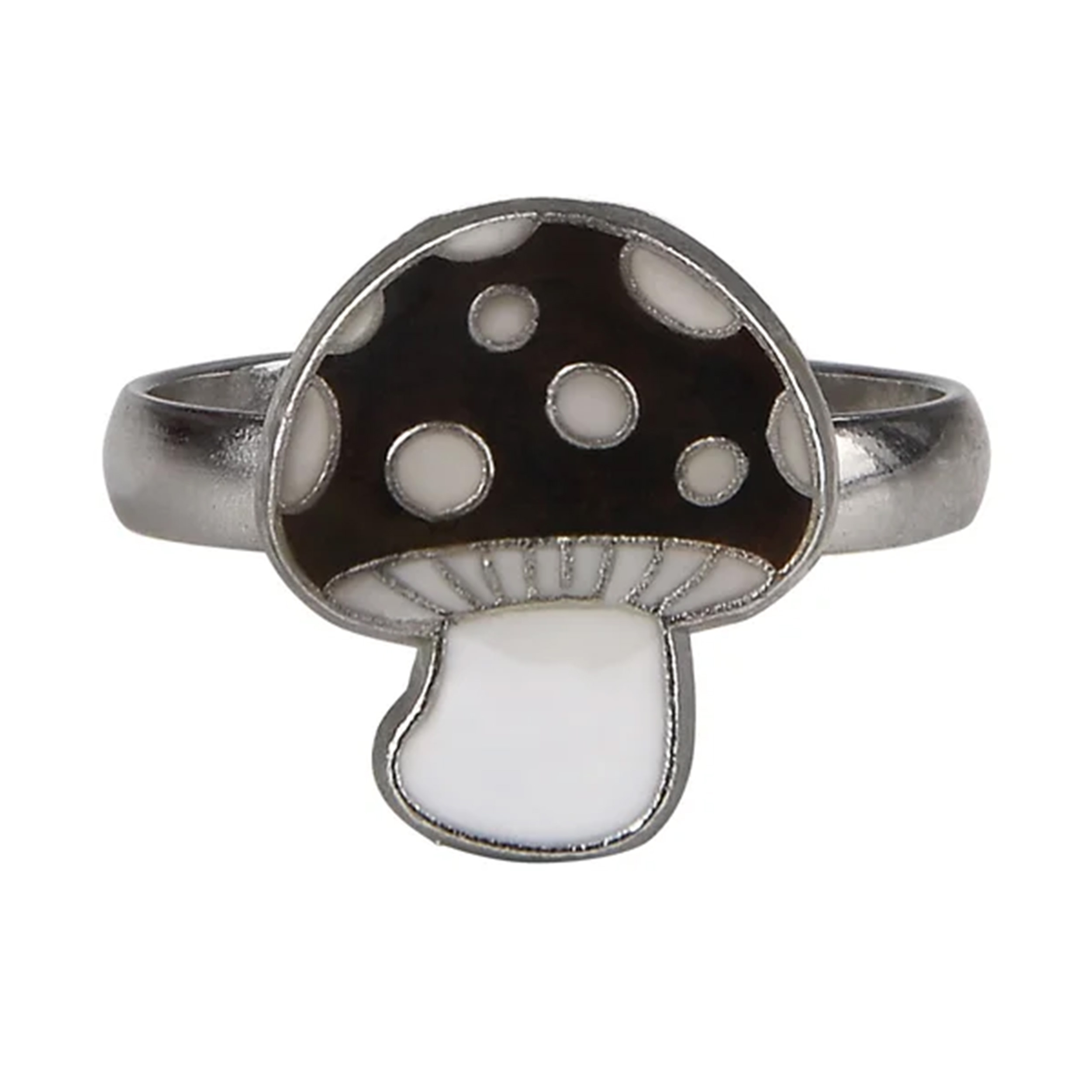 ✨ I am silver plated, adjustable, and shaped like a cheerful little mushroom with a glossy cap and bright spotted details. Basically, I am what happens when cute meets curious and then borrows a mirror. I do not like to brag. Actually, that is not true. I love to brag. Look at me.