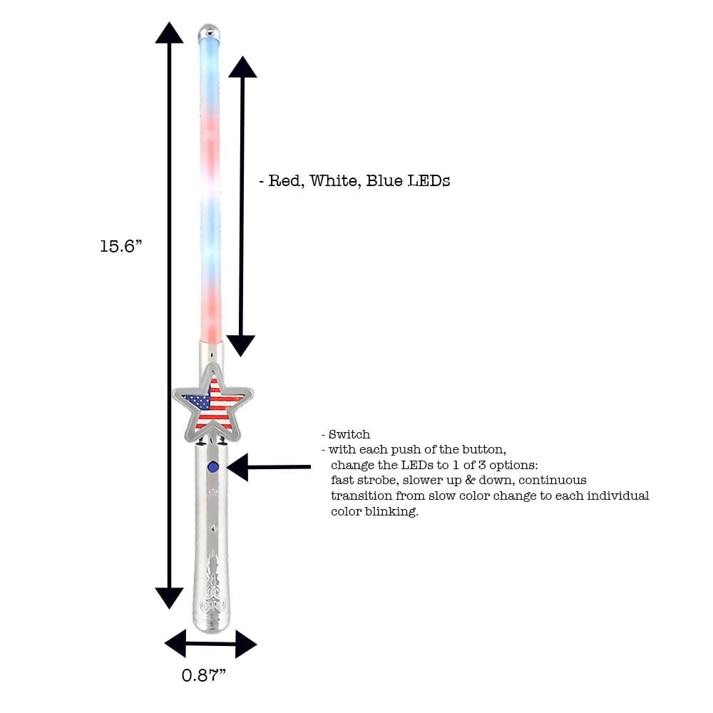 Hey there, party people! 🙋 It’s me, Penta Graham Patriot, your super-cool LED Light Up Wand! Born to shine like a true star on the American Flag, I’m all set to light up your life with an explosion of Red, White, and Blue hues! 🇺🇸⭐
