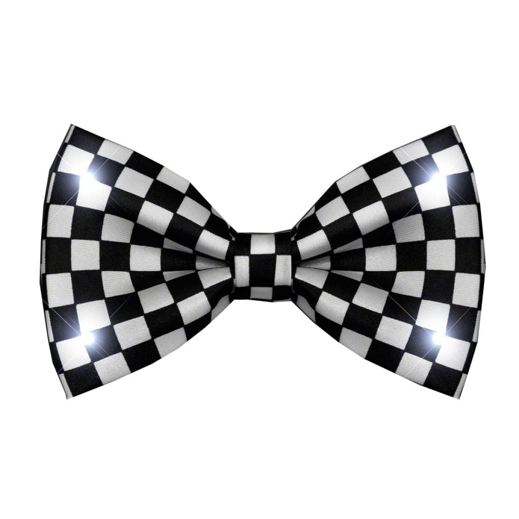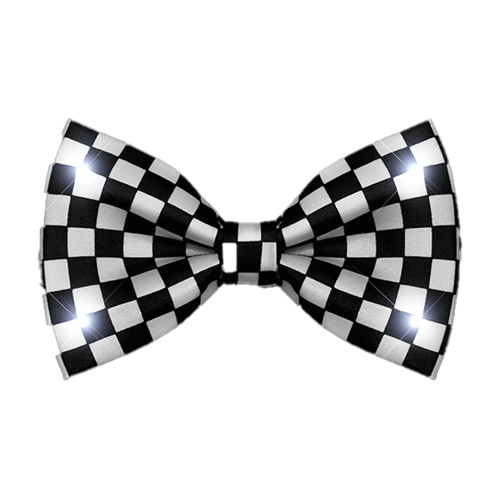 🤓 Hello there! I’m the Black and White Checkered LED Bow Tie, your new best friend for looking dapper! If you want to turn heads and steal the spotlight, I’m the accessory you need. With my stylish checkered pattern and dazzling LED lights, I’ll make you the life of any party!