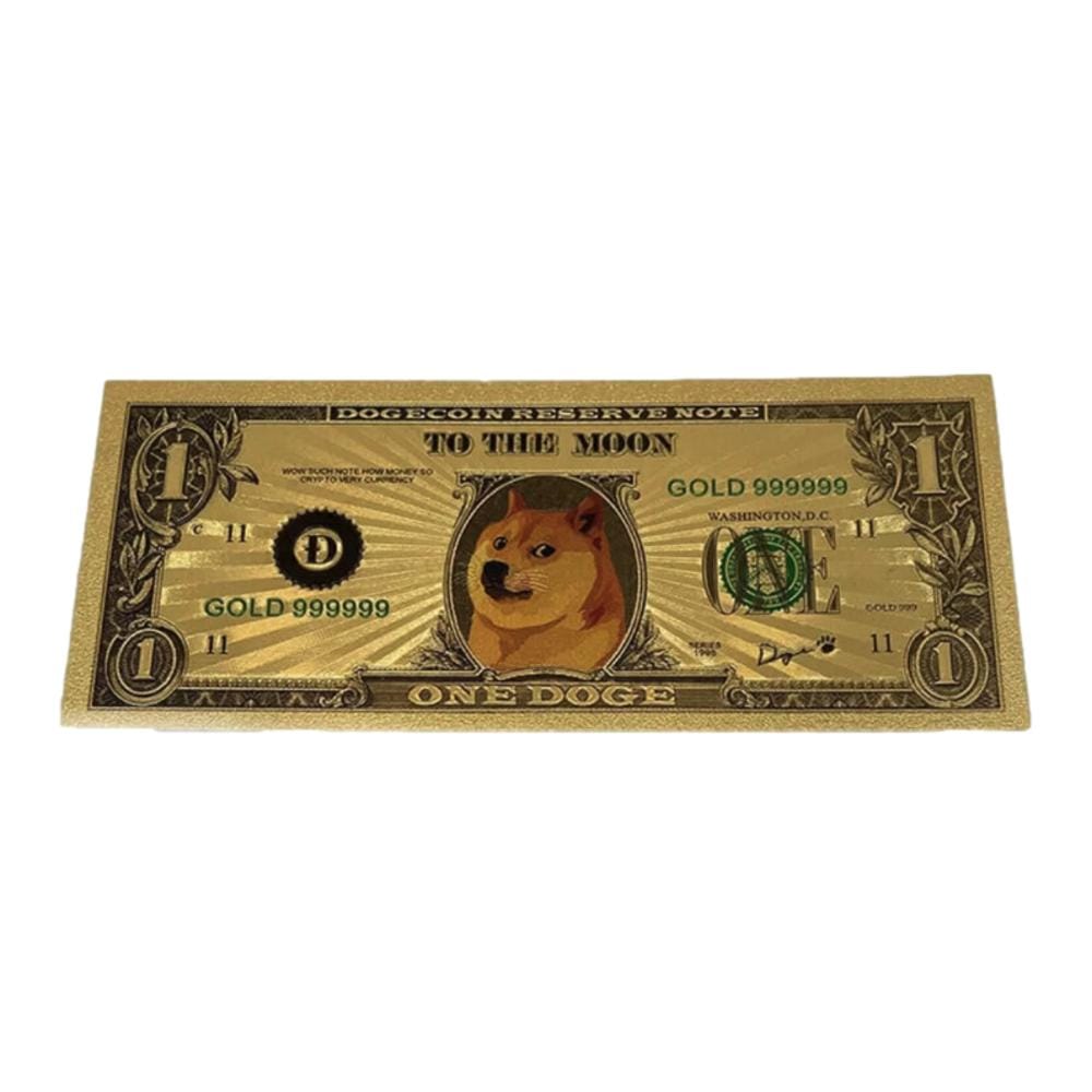 Real high quality actual physical Dogecoin Bill made with gold plating. Well crafted tangible bill that shines like pure gold. Must have memorabilia piece for every Dogecoin enthusiast.