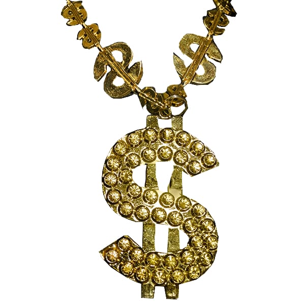 This gold bling play jewelry is in the style of Mardi Gras beads, so they don’t light up. Dollar Sign Beads are sold in increments of 12 so when you purchase 1 you will receive 12 Necklaces. When you purchase 2 you will receive 24 and so on. Dimensions: Length: 30 in. Necklace Colors: Gold