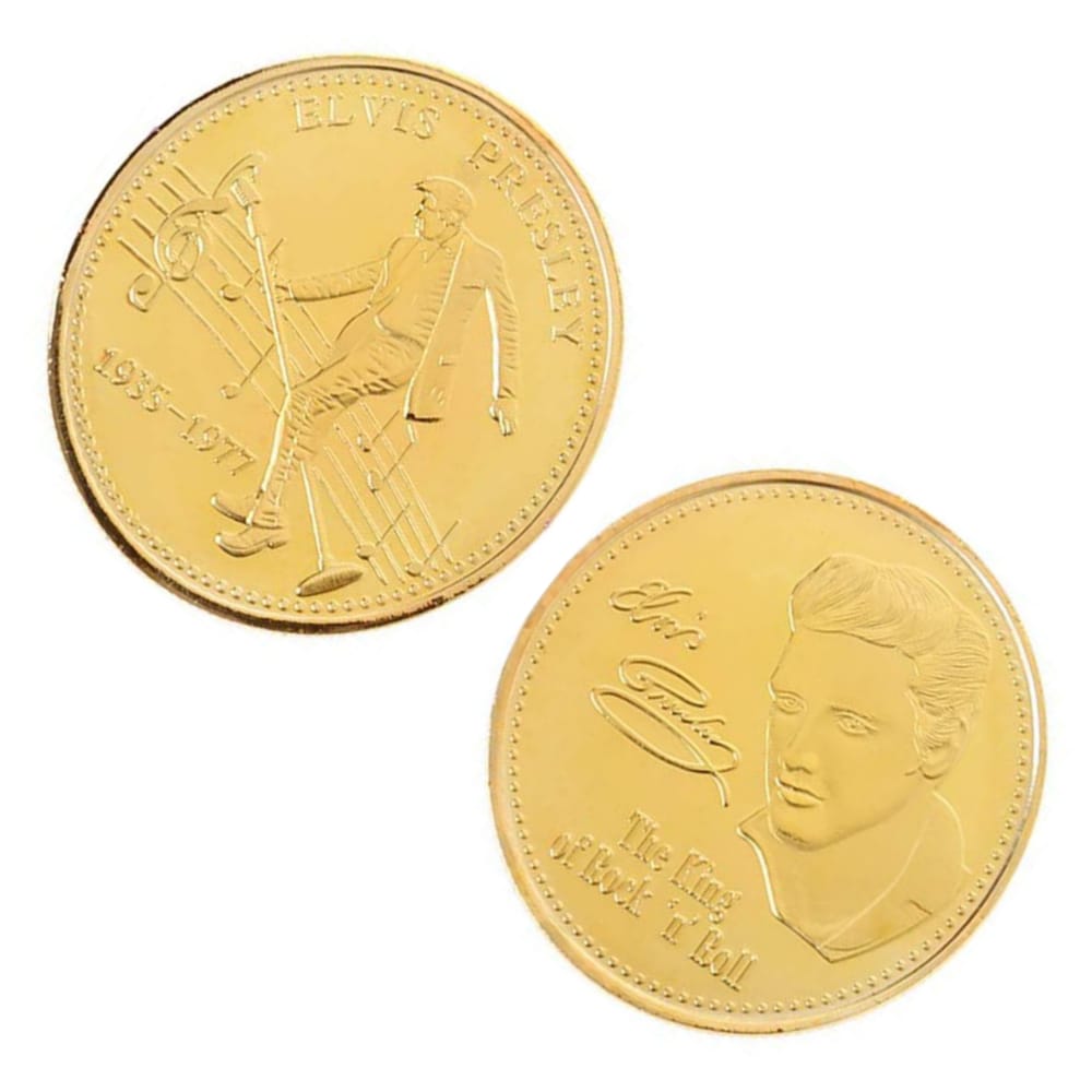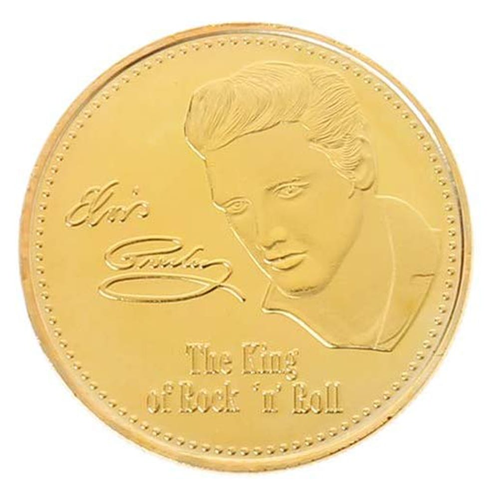 A must have for the collection of any Elvis fan. Give your buddies a challenge coin that Rocks! They shiny gold coin features Elvis Presley in his finest moments rockin’ on one side and rollin’ on the other.