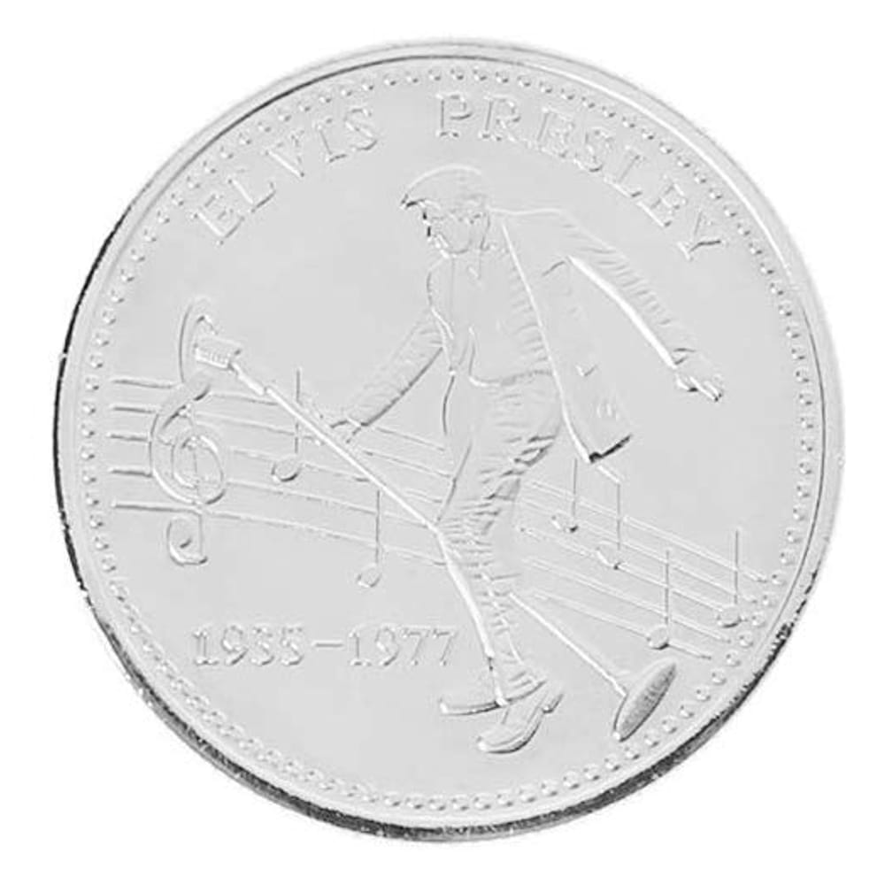 A must have for the collection of any Elvis fan. Give your buddies a challenge coin that Rocks! They shiny silver coin features Elvis Presley in his finest moments rockin’ on one side and rollin’ on the other.