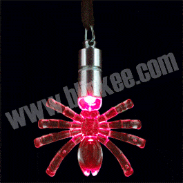 To activate your Tarantula Necklace, twist the top of the battery housing. Height 2.50 in. / 6.35 cm. – Width 1.93 in. / 4.90 cm. – Necklace 35 in. / 88.90 cm. LED Colors: Blue and Red Batteries: Includes 3 replaceable AG3 batteries. – Weight: 0.03 LB