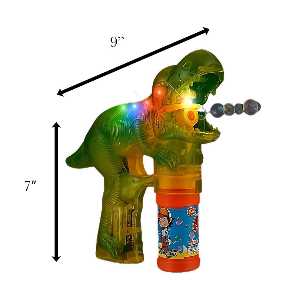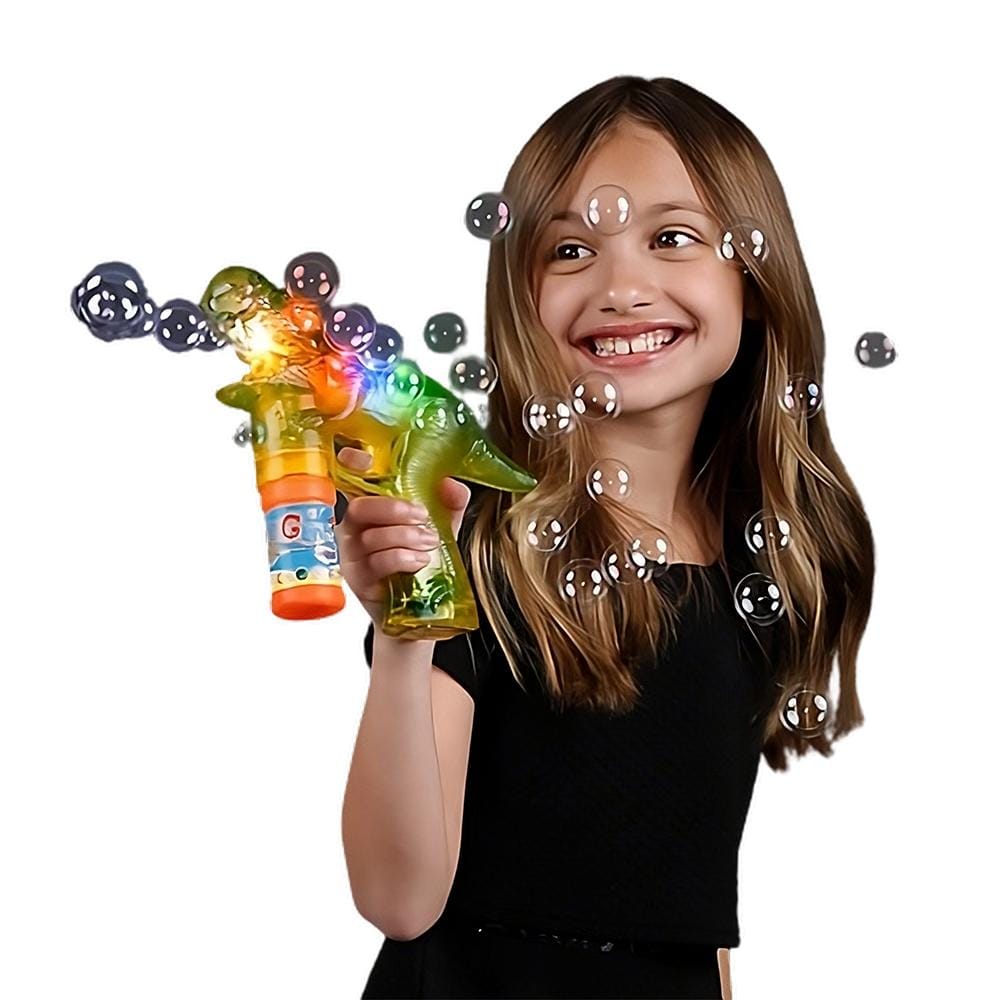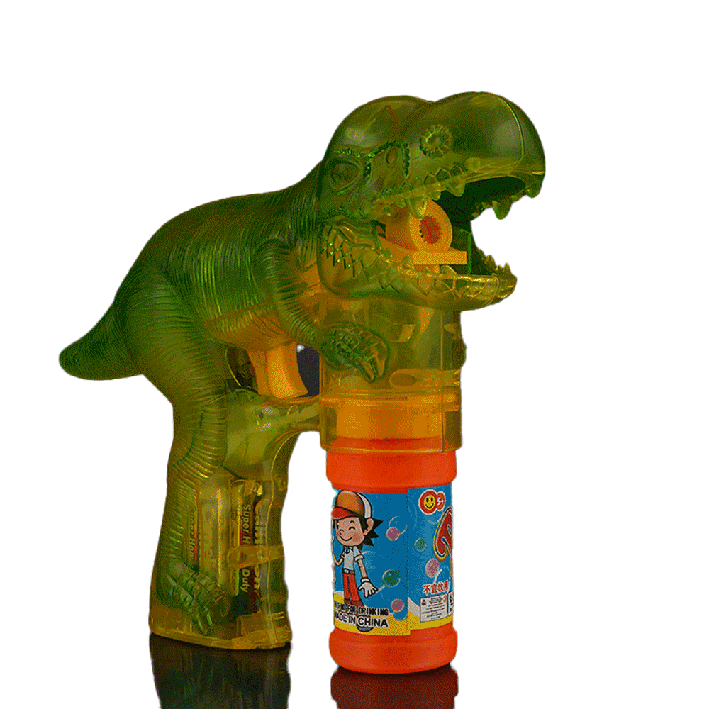 Every time you squeeze my trigger, I’ll shower you with a gleaming LED bubble spectacle. That’s right, I come with a built-in LED Bubble Gun. You might even say I’m a Dinosaur Bubble Gun with No Sound that lights up your day, or night! 🎉