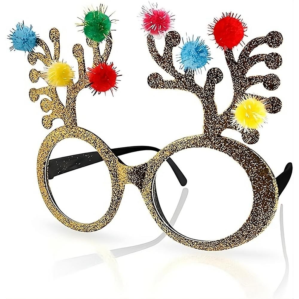 Hey there, ho ho ho! I’m the fabulous Gold Glitter Christmas Holiday Reindeer Antlers Animal Glasses, and let me tell you, I’m the life of the holiday party! 🎉 With my sparkly gold glitter frame and fuzzy, colorful puff balls on my antlers, I’m not just a pair of glasses; I’m a whole mood!