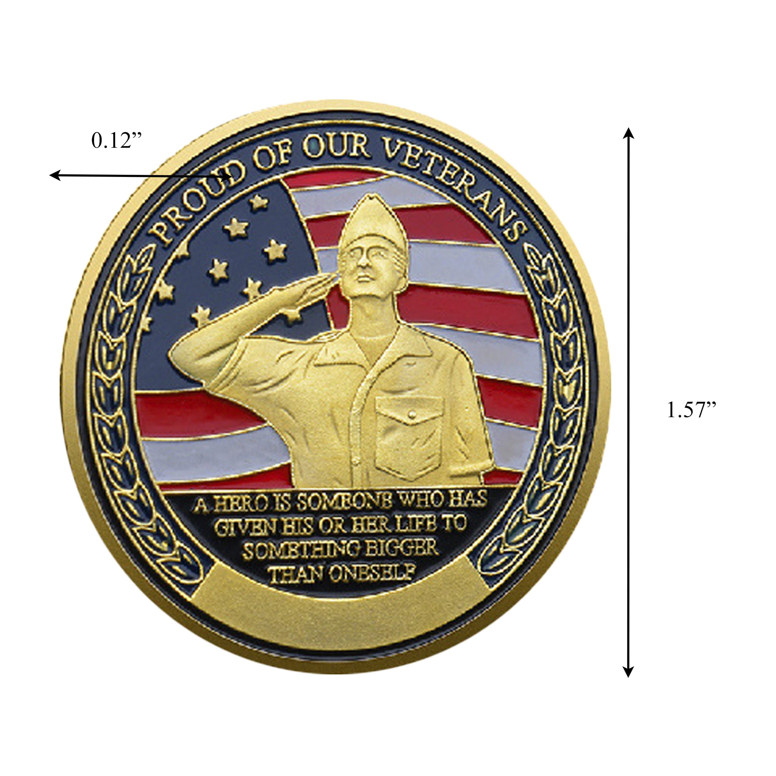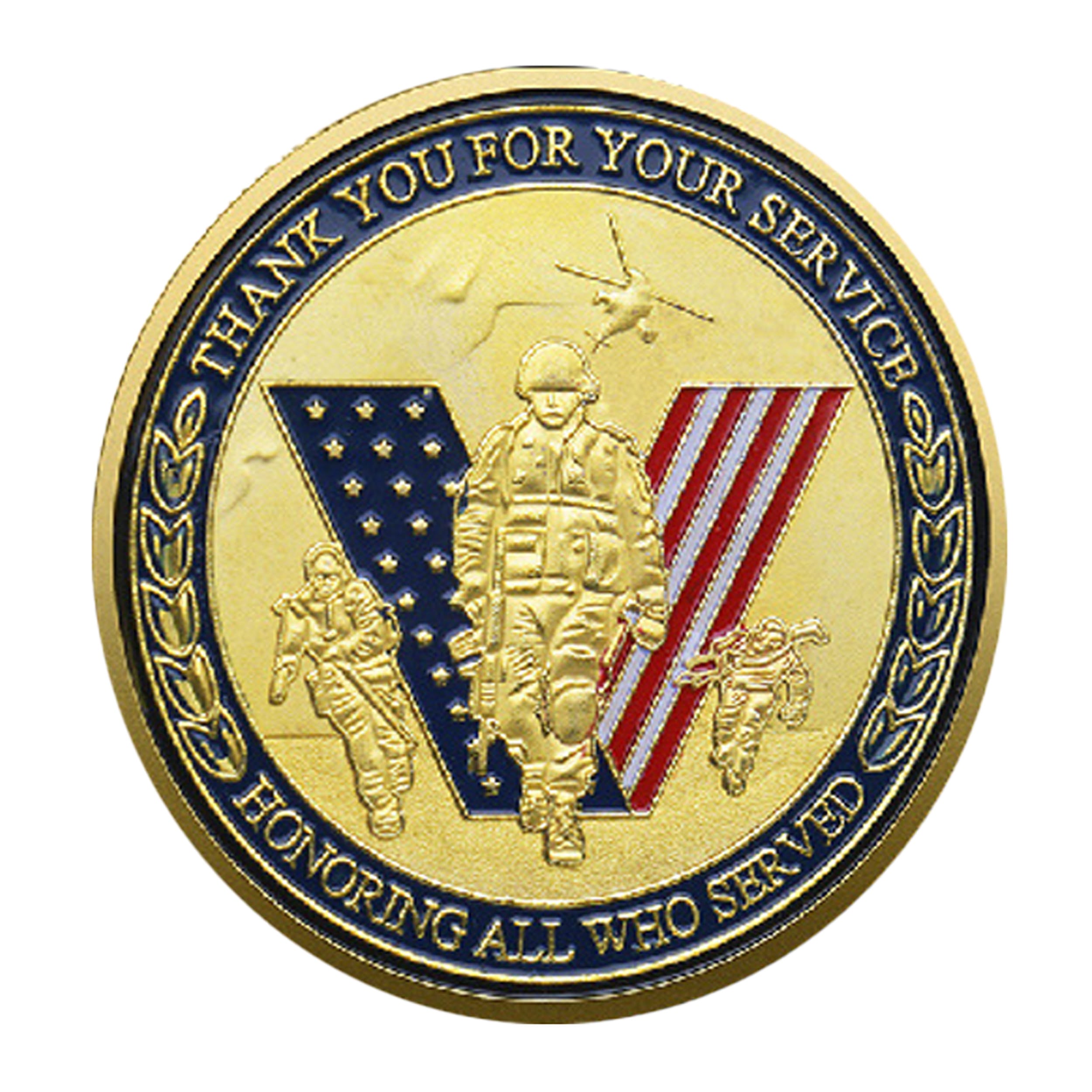 Salutations, patriot. I’m not just any ol’ coin—I’m your golden slice of heartfelt gratitude, shining brighter than a polished boot at inspection. You ever held a salute in a Texas summer heat? Yeah, that’s me—immortalized mid-salute, chest puffed, posture perfect, and proud as punch.