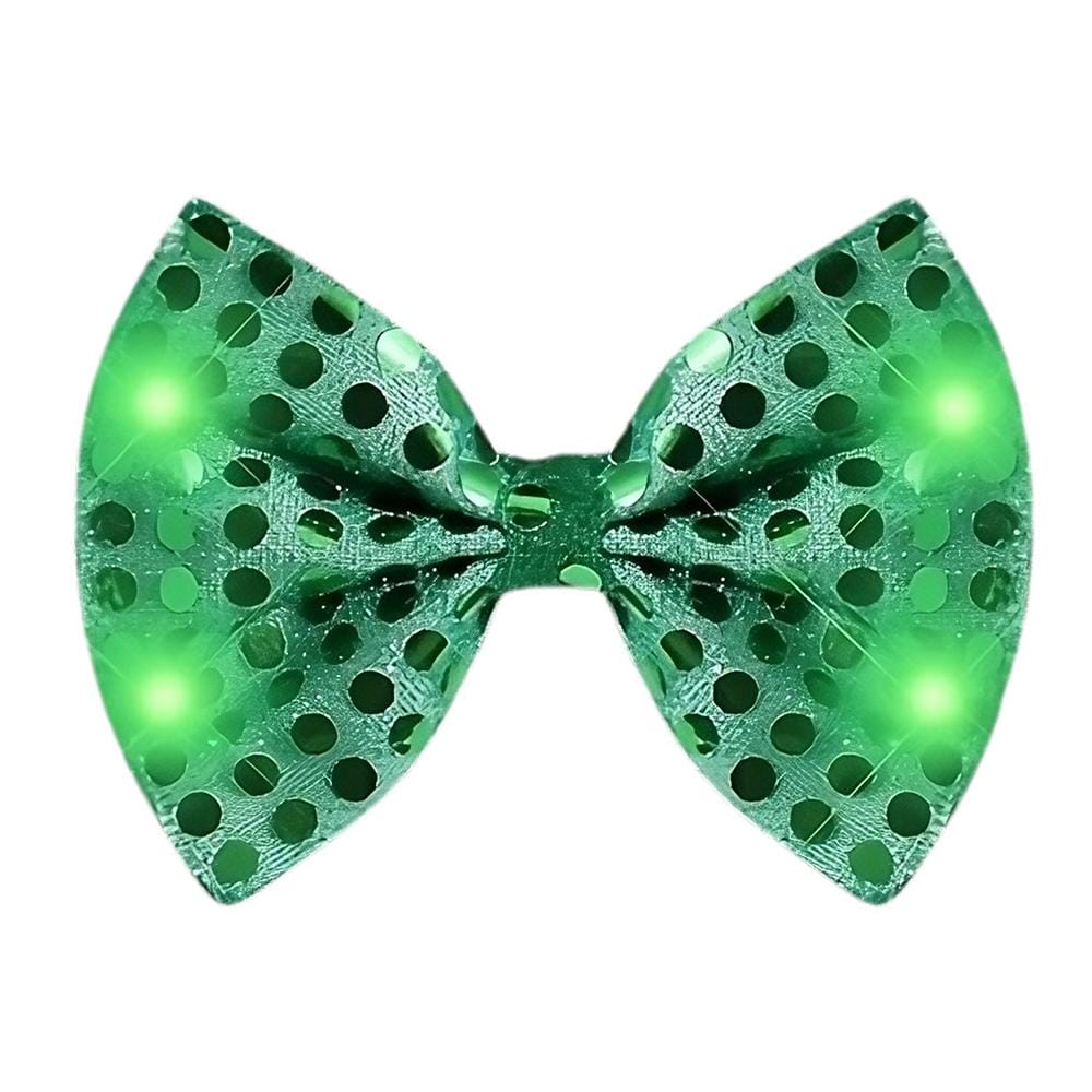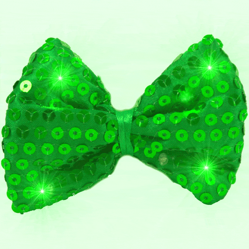 Green Sequin Bow Tie with Green LED Lights for St Patricks Day