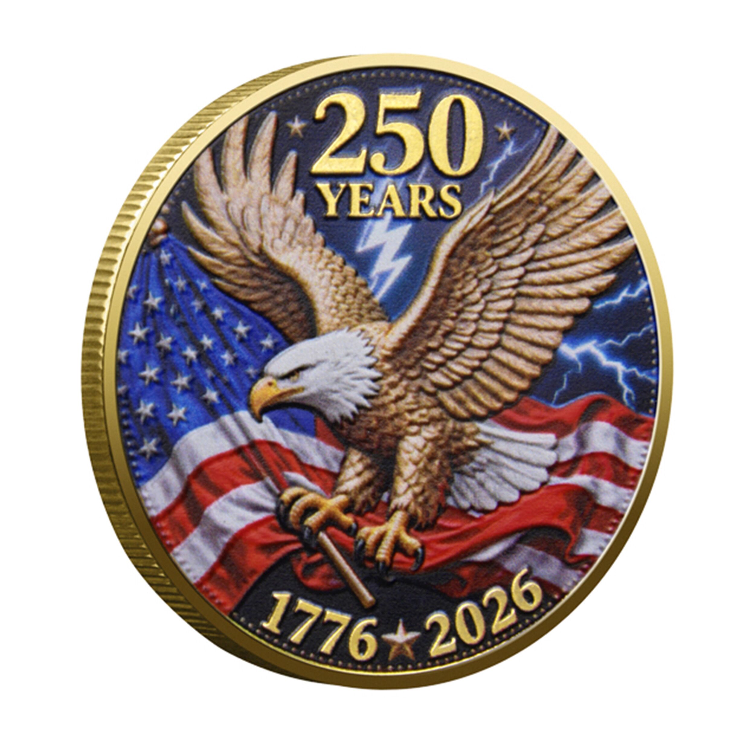 🇺🇸 Alright… let’s not pretend you didn’t notice me first. I’ve got an eagle mid-swoop, lightning cracking behind me, and a flag that looks like it refuses to sit still. Subtle? Not really. Memorable? Yeah, that’s more my speed. I carry 250 years right on my face, and honestly, I wear it pretty well.