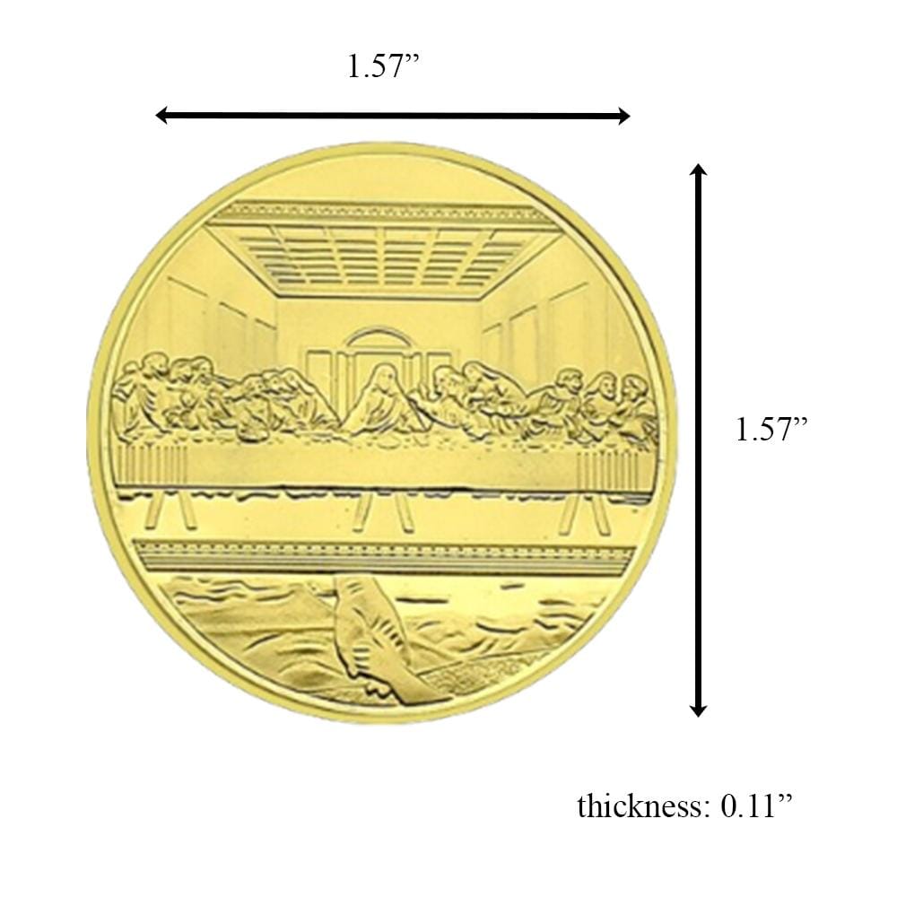 Hey there, folks! I’m the Jesus The Last Supper Commemorative Coin, and let me tell you, I’m not just your average piece of shiny metal. Nope, I’m a fabulous gold-plated treasure, coming in at a perfect 1.57 inches across. You could say I’m the “big cheese” in the coin game! 🧀✨