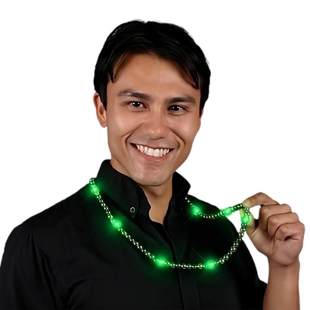 Hello there, lovely humans! I’m your fabulous LED necklace, and I’m here to brighten up your life—literally! With my 31 inches of stunning green and gold metallic beads, I’m the ultimate showstopper for any St. Patrick’s Day bash. You can call me the life of the party, but don’t worry—I won’t steal the spotlight… too much! 🎉