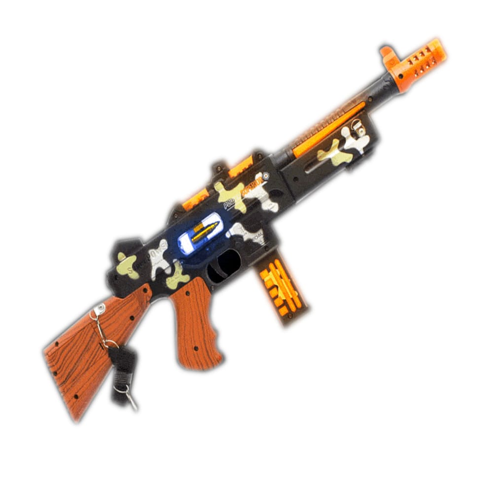 LED Double Grip Camo Toy Tommy Guns have a multicolor Camo design and automatic loading movement that is action packed and keep kids exited, and entertained. Flashing colorful LED lights and Double Grip for easy handling will make any child or adult very happy.
