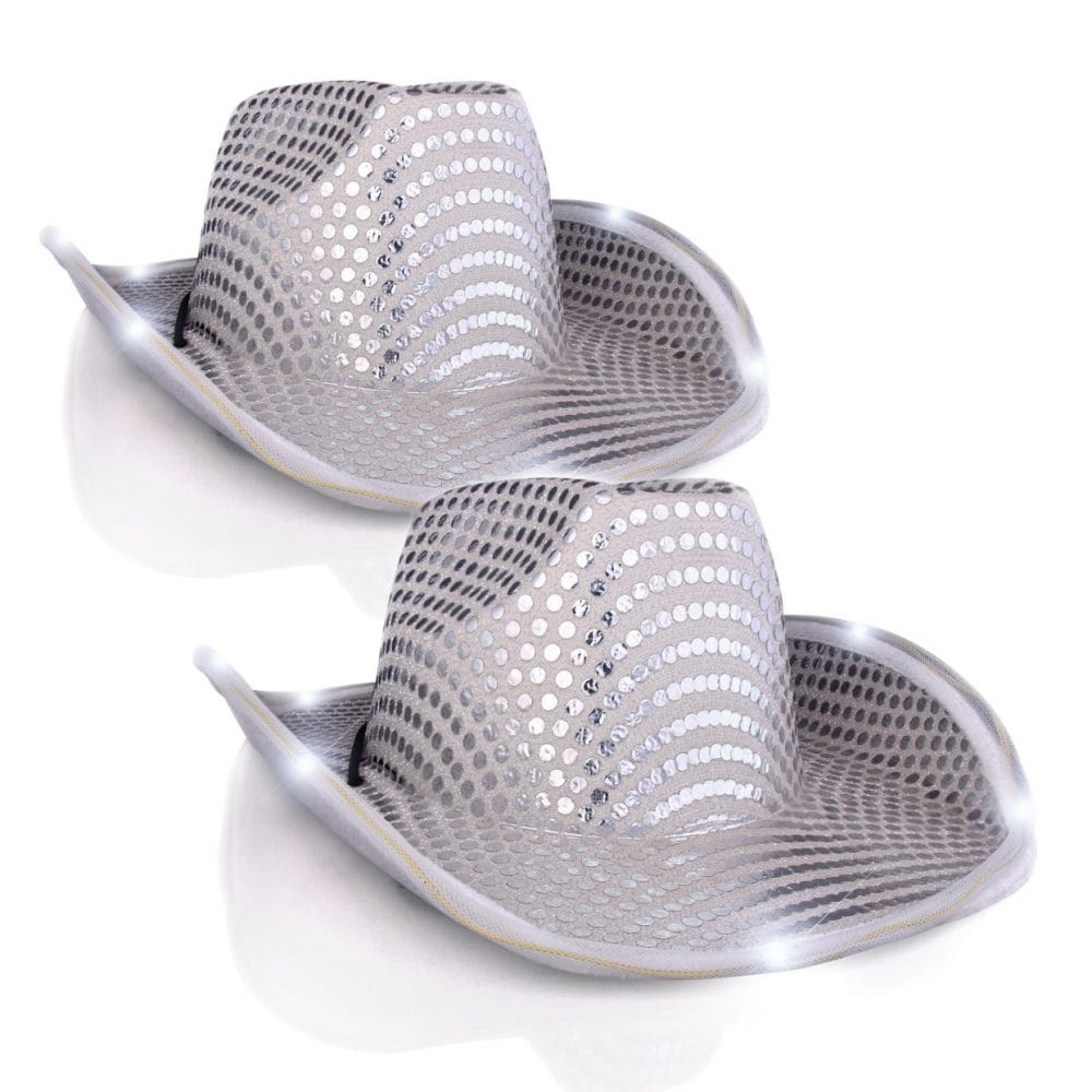 Howdy, partners! 🤖 I’m the LED Flashing Cowboy Hat with White Sequins, and I’m here to turn your hoedown into a showdown of sparkle and fun! YEEhaw! ⭐ I’m not just any hat; I’m the life of the party, ready to light up the dance floor like it’s a Texas-sized disco! 💃
