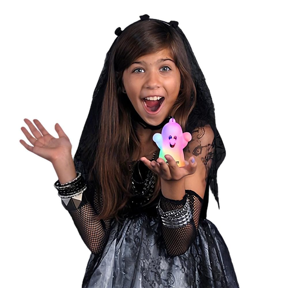 Want to be the life of the party? Hand me out as treats or wear me as part of your costume! I promise I’ll make you the ghost with the most. Plus, I’m powered by three replaceable AG3 batteries, so I’ll keep shining bright long after the candy is gone! 🍬