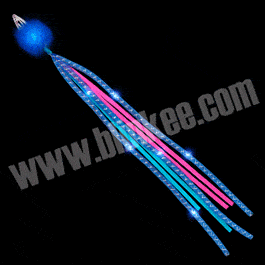 To activate your LED Streamer Hair Clip, press the button on top of the feather-covered barrette. Click it repeatedly for your different light options: flash, blink, steady, then off. Dimensions: Length (including clip): 19.0″ Clip Width: 1.25″ LED Colors: 6 Blue Hair Clips batteries are not replaceable.