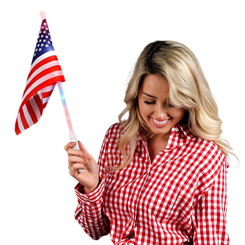 Activating my flashing glory is as easy as pie! Just pull the tab and press the button on my handle. You can choose from three dazzling functions: strobe, blink, or flash! It’s like a disco party for your patriotic spirit! 🎉