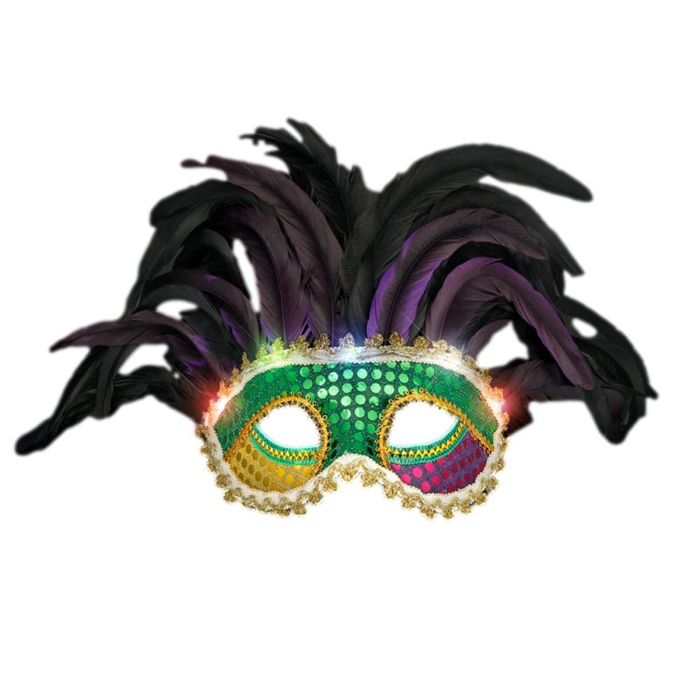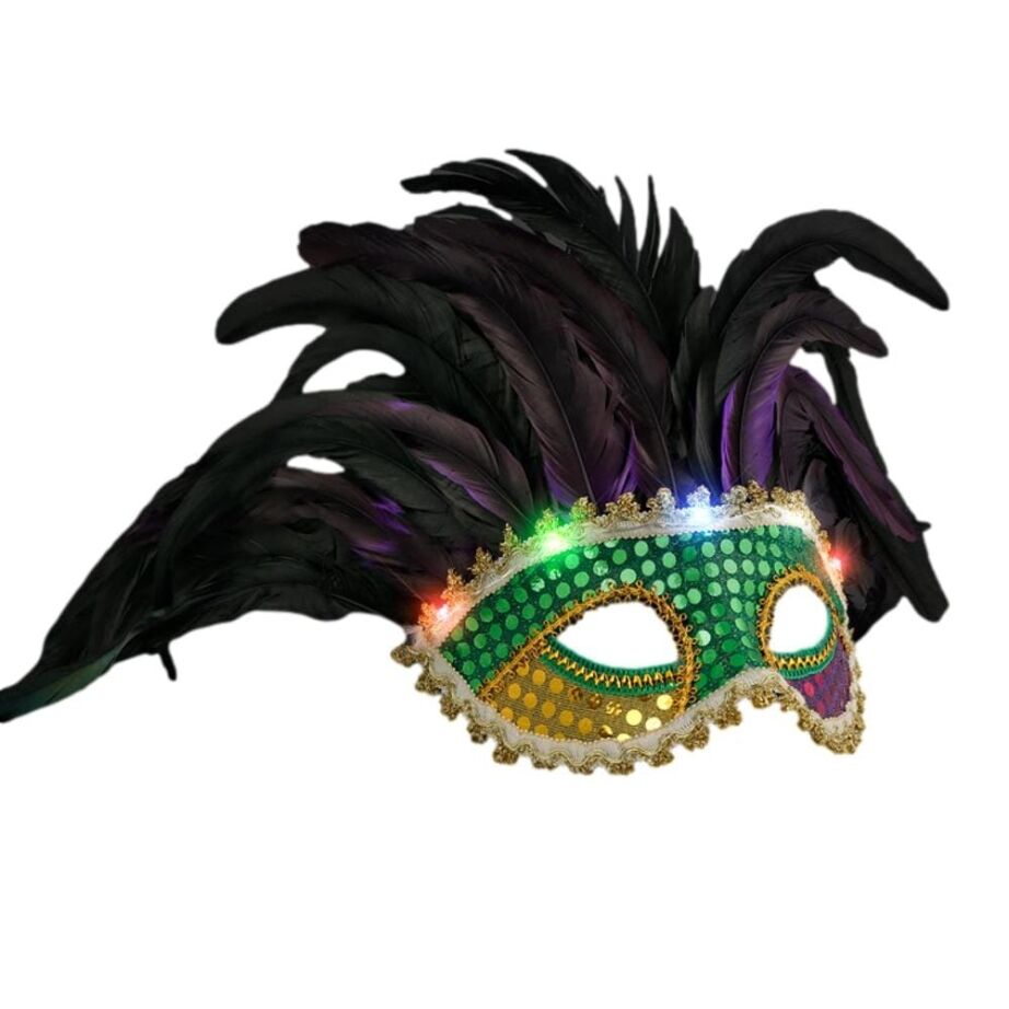 This skillfully designed Light Up Deluxe Venetian Mardi Gras Carnival Festival Feather Mask for Fat Tuesday is a must-have ornament for your Mardi Gras themed party. This mask is patterned similar to an original Venetian mask covered with sequins and it will make you stand-out glamorously! Our Light Up Deluxe Venetian Mardi Gras Carnival Festival Feather Mask for Fat Tuesday is crafted with passion, and dedication to produce a magnificent product.