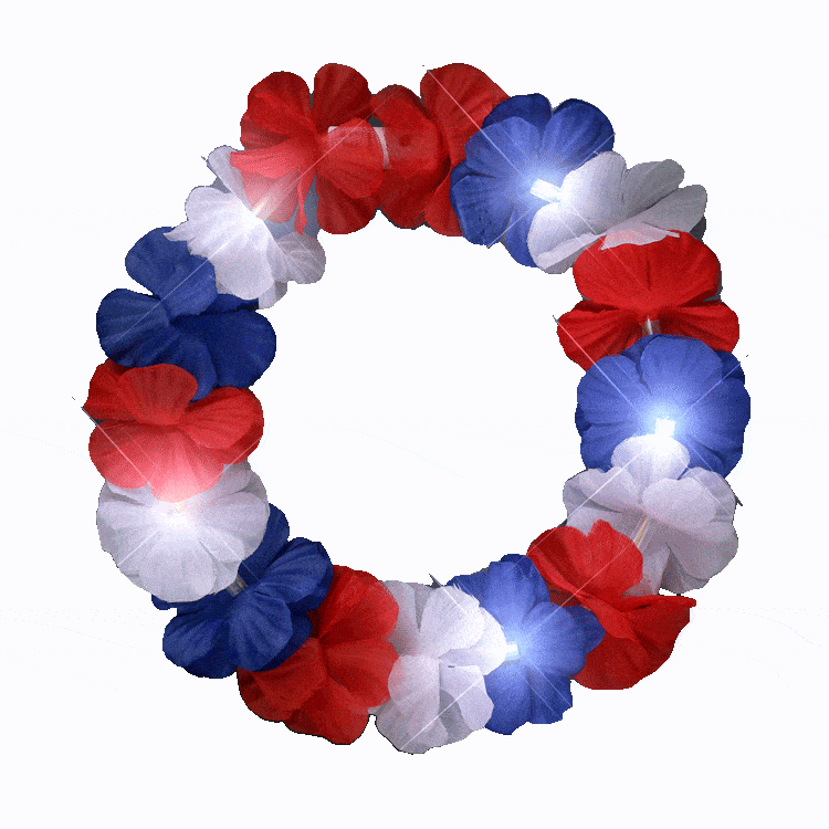 Hey there! I’m the fabulous Light Up Flower Hawaiian Stretch Crown, and let me tell you, I’m the life of the party! 🎉 When you wear me, you’re not just accessorizing; you’re making a statement. My red, white, and blue glory will have you looking like the ultimate patriot at any gathering!