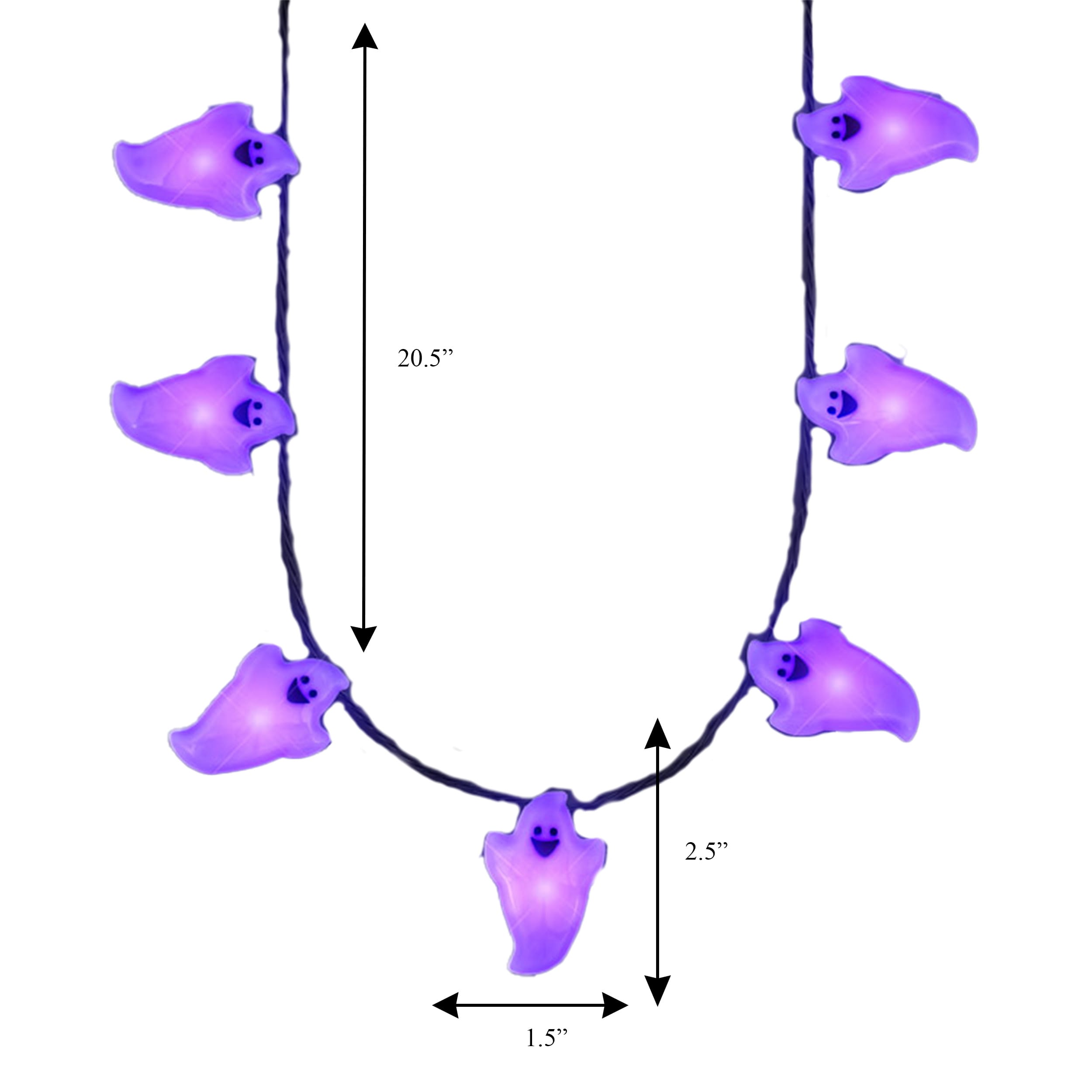 👻 Hey there, ghouls and boys! I’m your quirky Light Up Ghost Charms String Lights Necklace, here to sprinkle a bit of spooky charm on your Halloween getup! Picture this: a string of delightful ghost-shaped lights glowing softly in a haunting purple hue. I’m not just any accessory; I’m the life of the Halloween bash! 🎃