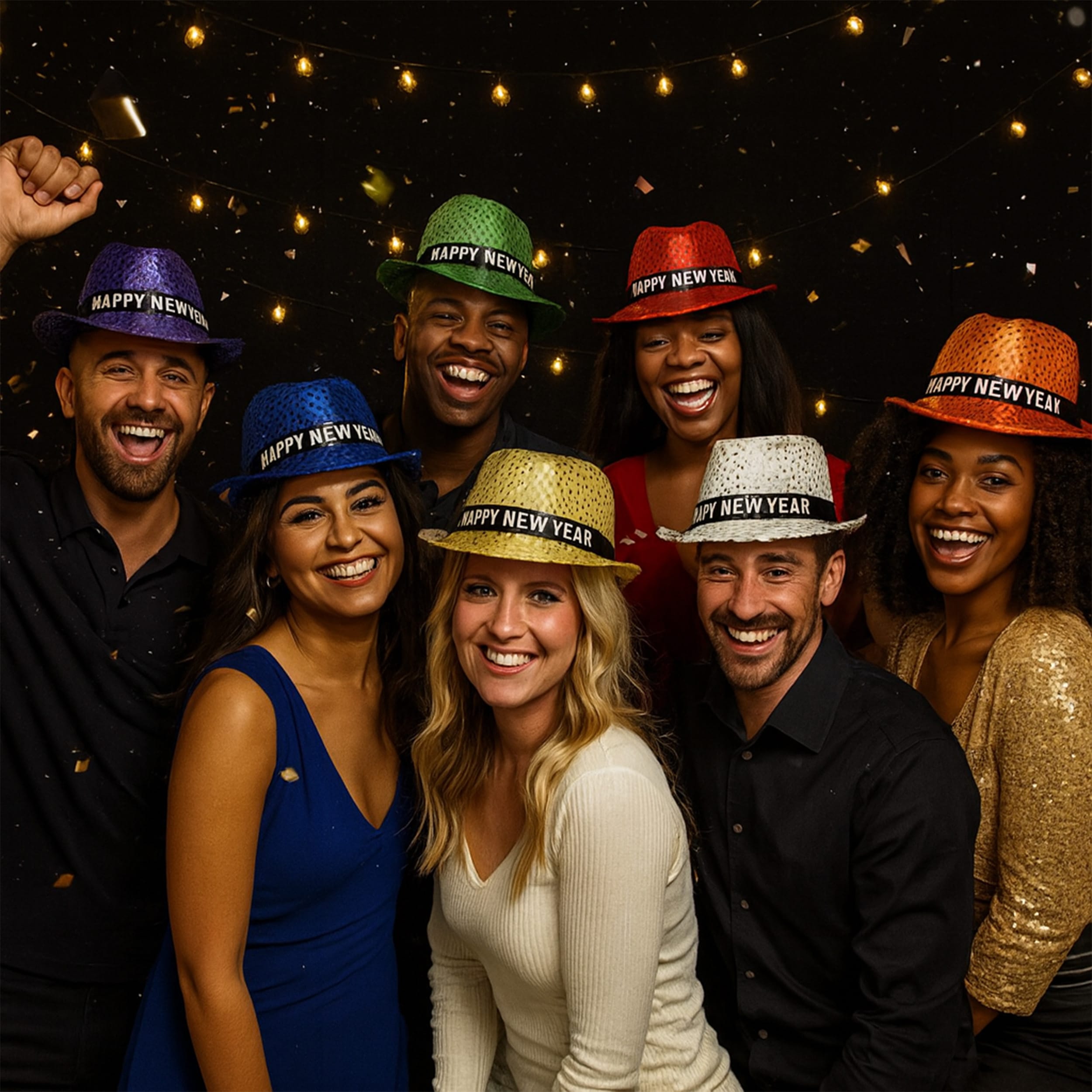 Each ribbon fedora features 6 LED’s and one size fits most. Batteries are included and installed. Sold as assortment of 12 fedoras per pack.