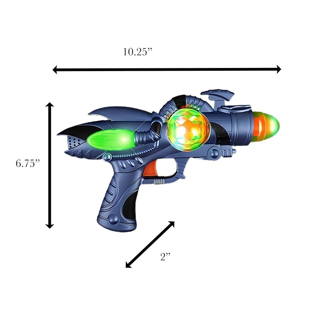Hey there, Earthlings! 🚀 I’m your trusty Light Up Musical Spinning Space Blaster Laser Gun, and I’m here to make your wildest space adventures come alive! You know, to be a notorious space pirate, you absolutely need your very own light-up gun toy with some epic space sounds. Guess what? I’m the latest model in the galaxy! 🌌