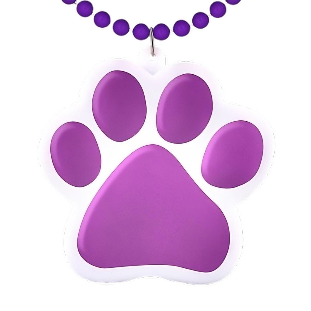 • Dazzling Design: The Light Up Purple Paw Print Charm Necklace shines brightly with its stunning white LED lights, making it the perfect accessory for any spirited event! Whether you’re at a game or a party, you’ll be the center of attention! 🏆