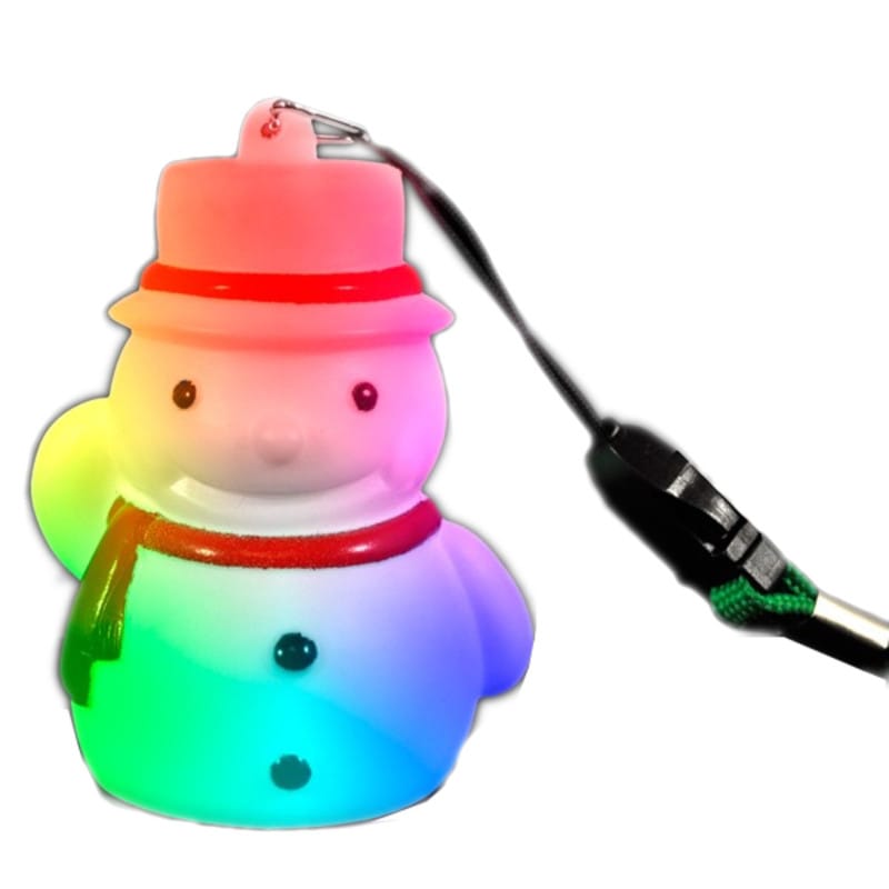 Instructions: To activate press the button located on the back of the cane below the battery housing. Light Up Snowman Necklaces have multiple light functions. Set the lights on a random light flash, have all the LEDs blink at once or an up an down flash. Note: The lanyard does not light up or flash. Dimensions: Snowman: Height: 3.12 in. Width: 2.25 in. Lanyard: Length: 30.5 in. LED Colors: 1 Blue, 1 Red, 1 Green Lanyard Colors: Green Batteries: Includes 3 Replaceable AG13 Batteries.