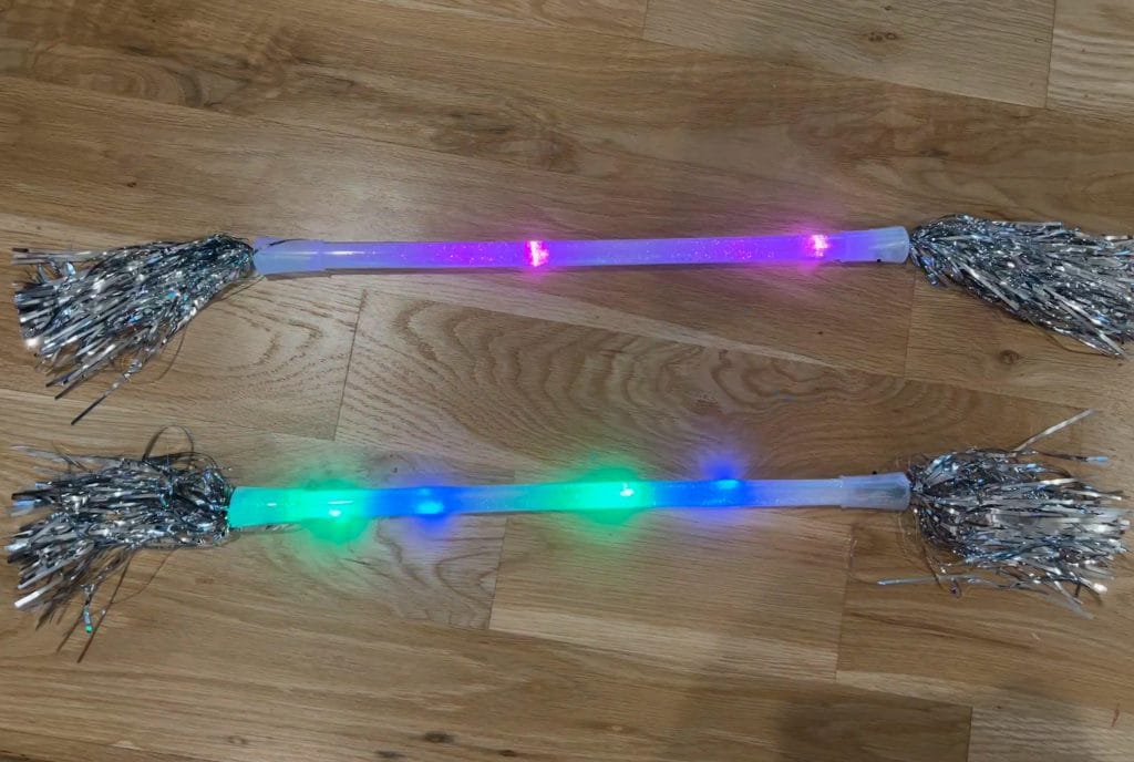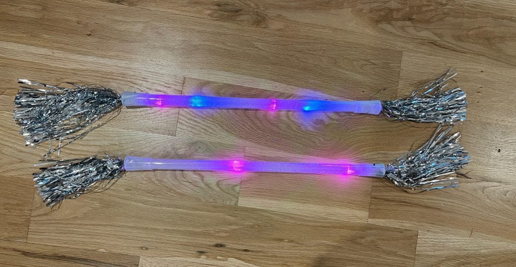 You may not know this, but I’m not just any ordinary baton. I’m 21 inches of pure fun, decked out with silver tinsel on each end. When I light up, I turn into a disco party on a stick! 💃