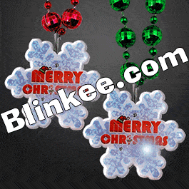 Merry Christmas Blinkies with Beaded Necklace Flashing Body Light Lapel Pins