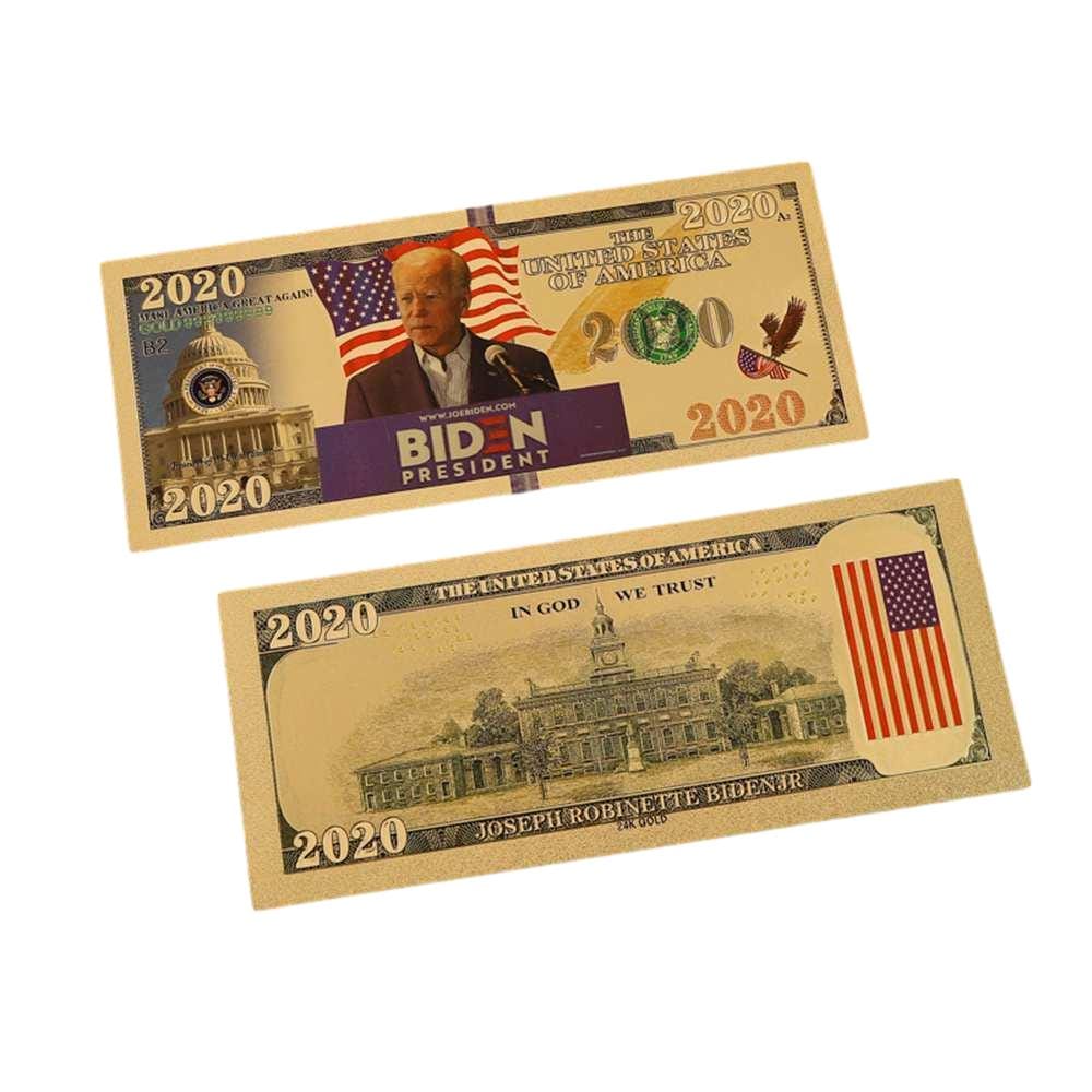 This extravagant 24k gold plated imitation bank note is a one of a kind commemorative item. Our Podium Campaign Gold Foil President Joe Biden 2020 24k Gold Plated Bill Collectible Banknotes for Decoration is handcrafted with utmost care to each element which recreates the actual United States one billion dollar bill.