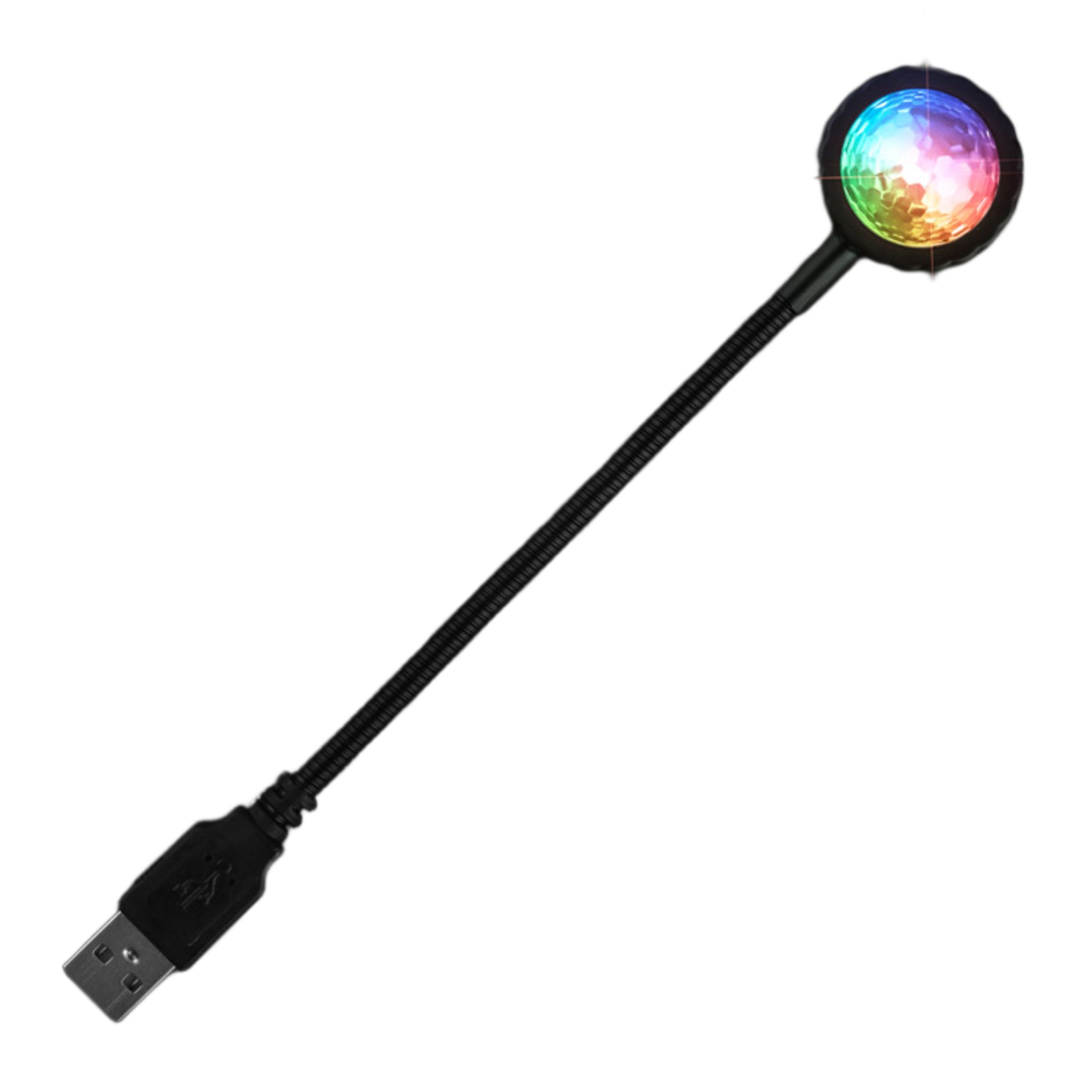 To activate your USB Mini Party Light, plug into the nearest USB 2.0 port, press the button on the back, and bend the flexy arm in the desired direction. Cycle through 9 light functions: