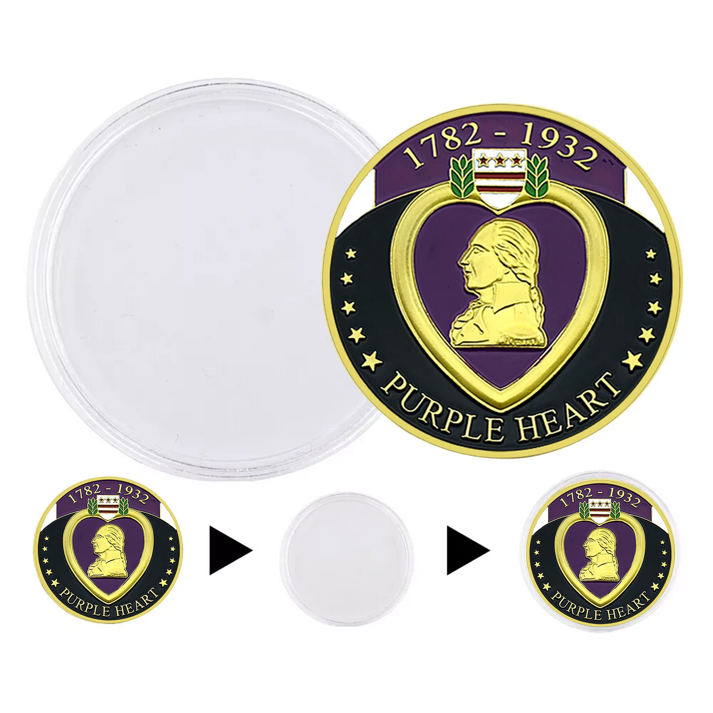 In summary, I’m the Purple Heart Military Merit Division Challenge Coin. I’m shiny, I’m tough, and I’m ready to take on the world one challenge at a time. With my protective matte case, I’m ready for any adventure! Get me today, and let’s start our journey! 🚀❤