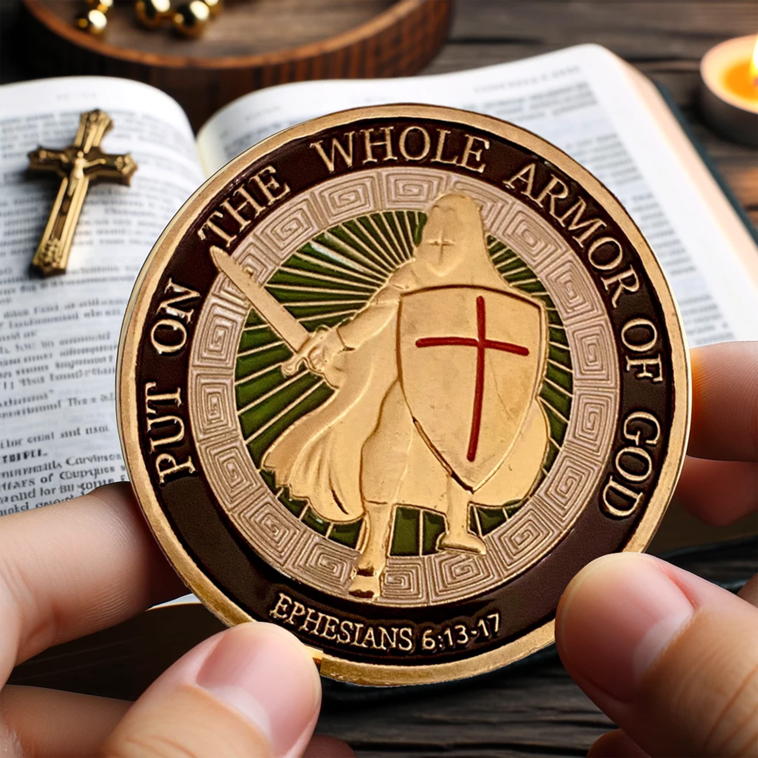 Hey there! I’m the fabulous Put on the Whole Armor of God Christian Gold Plated Coin. Let me tell you, I’m not just your average coin. Nope! I’m here to add a little divine sparkle to your life! ✨