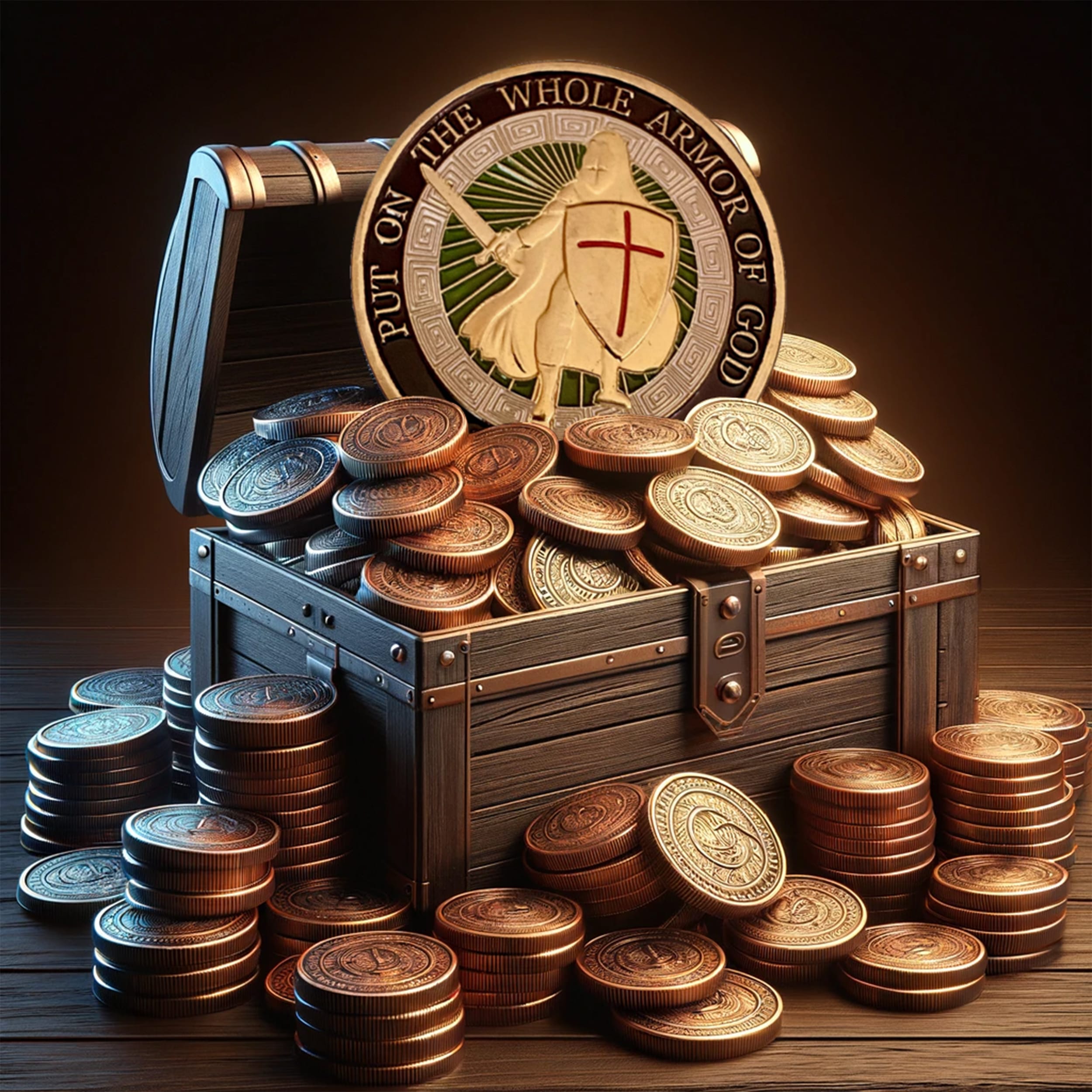 Don’t forget, I’m not just a coin; I’m your partner in faith and fun. Let’s shine bright and armor up together! Get ready to turn heads and inspire hearts! 💖 With my protective case, I’m ready for anything life throws my way!