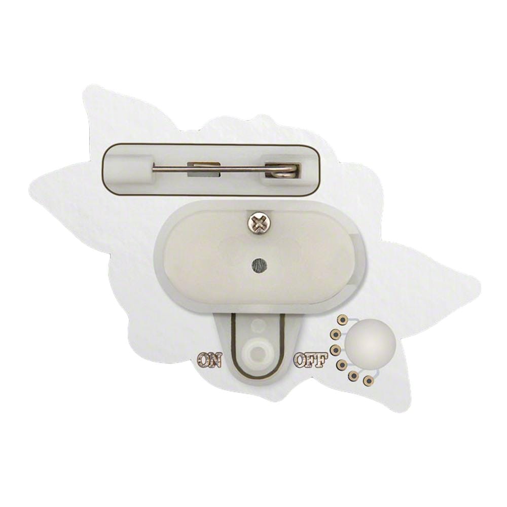 € battery; To activate my stunning light show, simply remove the pull tab and press the button on my back. Voila! You’re ready to shine like the star you are! And don’t worry, I come with a safety pin, so you can attach me to your outfit without any fuss. I promise I won’t stab you in the back! Well, not literally! 😂