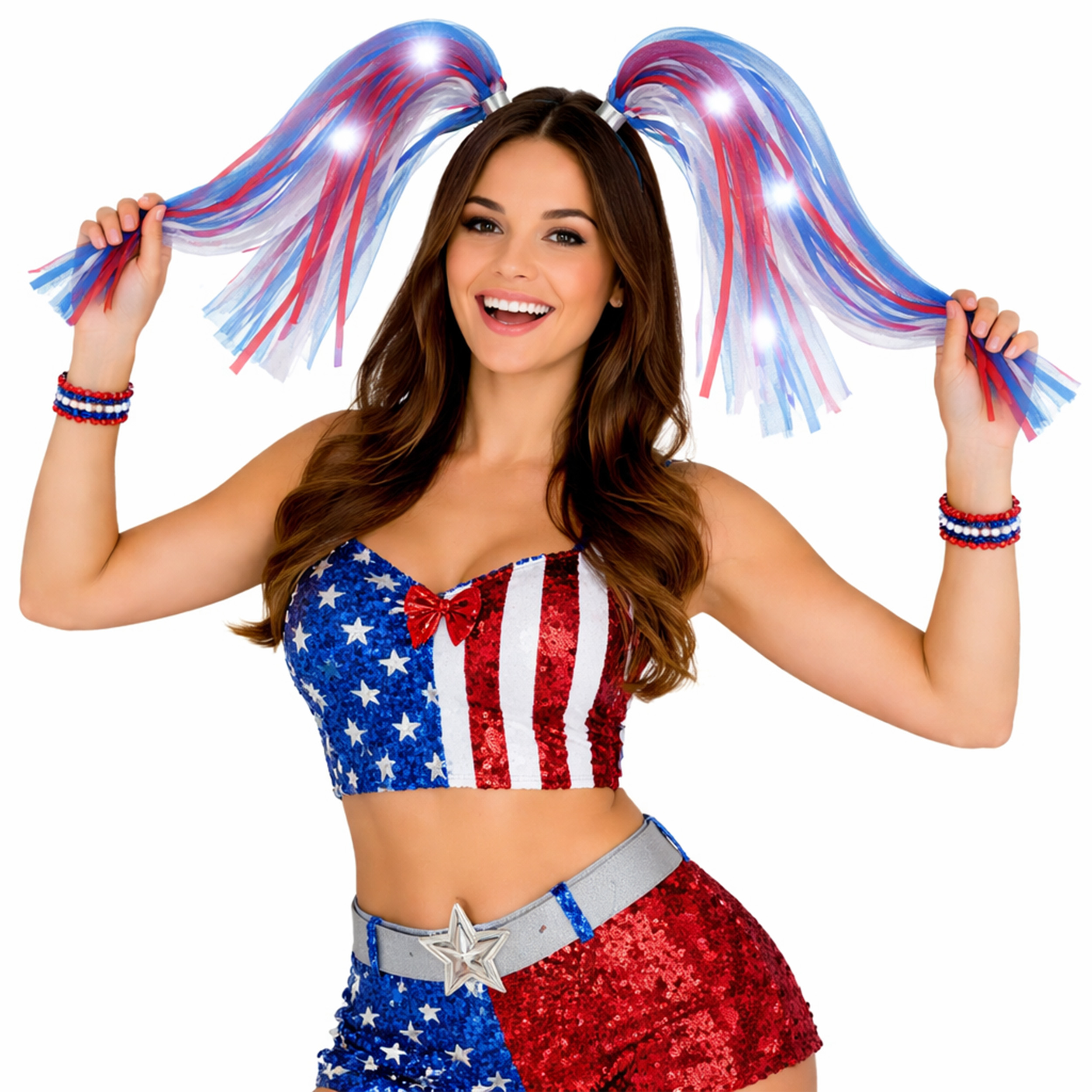 Hey there, party people! 🎉 It’s me, your fabulous Red White Blue Noodle Headband Flashing Dreads! Ready to take your celebration to the next level? I’m here to add some outrageous fun to your July 4th festivities and any all-American holiday! 🇺🇸