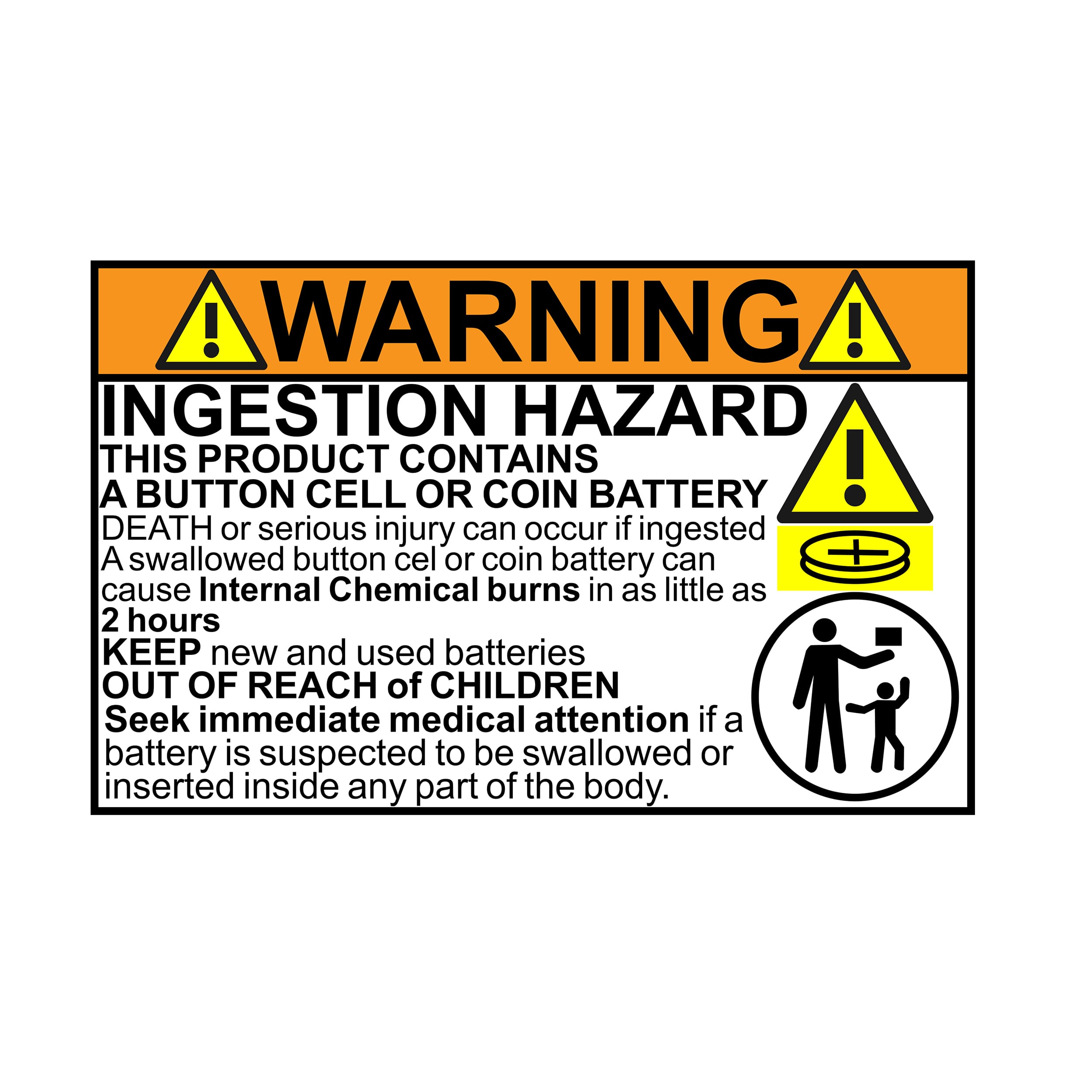 Hey there, safety champions! I’m the mighty Reece’s Law Warning Sticker, here to save the day and keep those tiny tots safe from the sneaky button cell batteries. 🦸♂️🦸♀️ With my bold warning and bright colors, I’m here to shout, “Warning! Ingestion Hazard!” louder than a kindergarten choir. 🎶