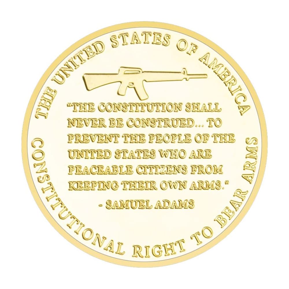 Flip me over, and bam! You’ve got the one and only Samuel Adams – no, not the beer, the historic guy – backing you up with a quote that’s a mouthful but a fistful of freedom: “The constitution shall never be construed… to prevent the people of the United States who are peaceable citizens from keeping their own arms.” It’s like poetry, but for patriots! 🦅