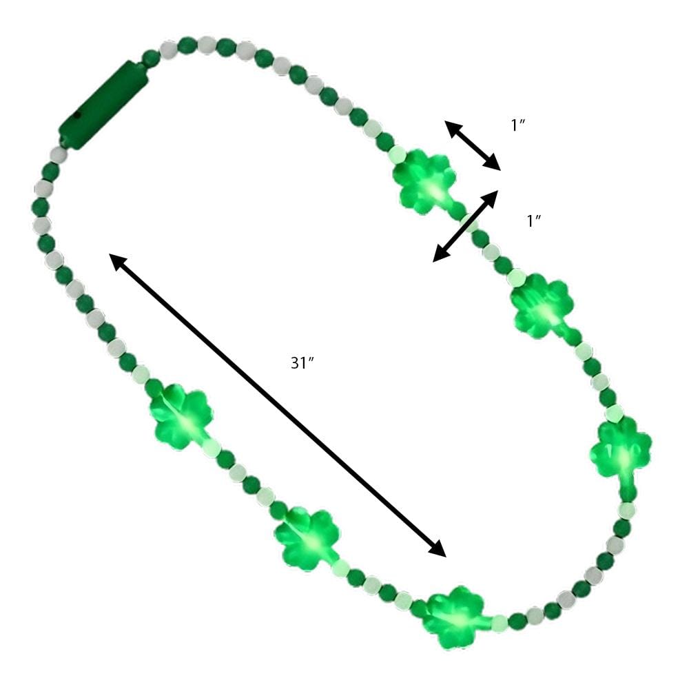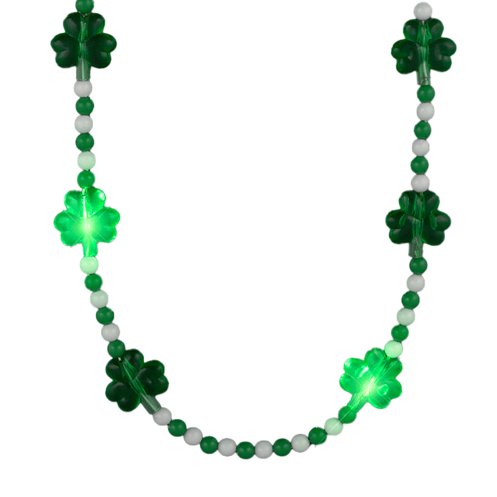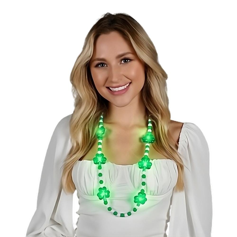 🍀 Hey there, I’m Onaki, the Light Up Shamrock Charms Opaque Bead Necklace, and I’m here to get you into the spirit of St. Patrick’s Day faster than you can say “Kiss me, I’m Irish!” 💋