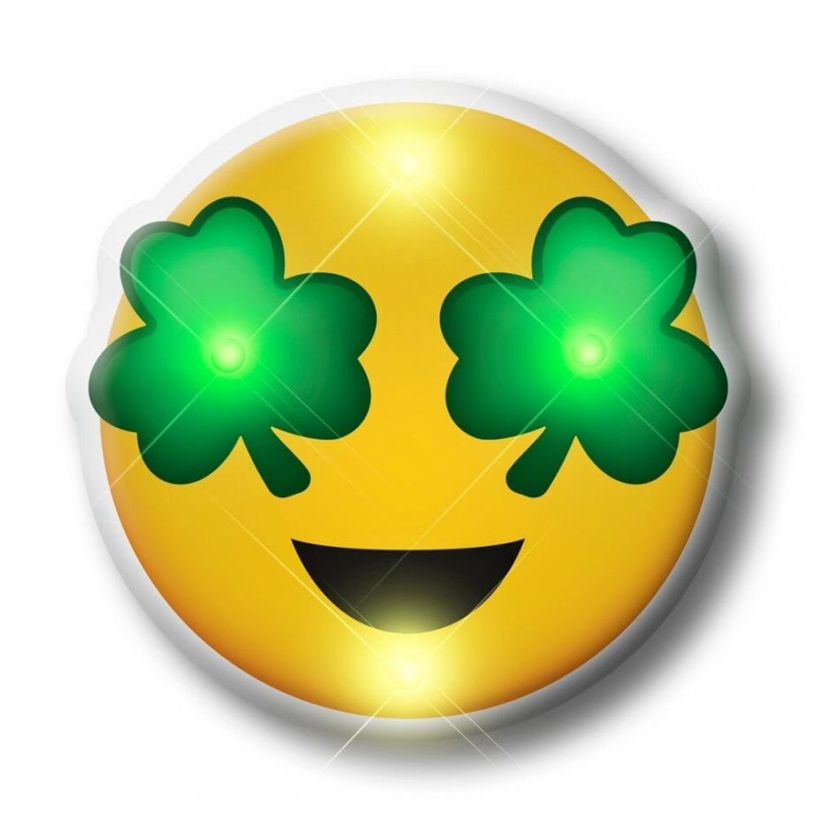 Shamrock Eyes Emoji Flashing Body Light Lapel Pins include 2 replaceable CR927 Batteries. Batteries are replaceable.