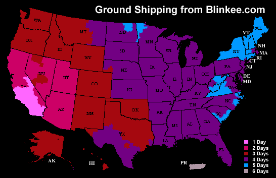 Below is a map showing the UPS Ground Shipping timetable. Locate where you live in the colored area & you'll be able to determine the transit time for your package. This map is only an estimate.